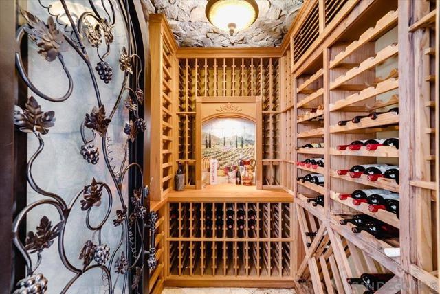 Prepare to be captivated by Blossom Valley's most exceptional estate, a privately gated sanctuary that redefines Southern California living. From the moment you enter through the grand gates, you are greeted by a sprawling 6.54-acre estate, offering unparalleled privacy and space. This estate is meticulously designed for both lavish gatherings and intimate celebrations, making it a true entertainer's paradise. The heart of this home is a chef's dream kitchen, featuring a huge prep island with a custom decorative extra-thick granite slab, a professional Wolf range, & Sub-Zero refrigerator, ensuring every culinary endeavor is a delight. The sophisticated 600 bottle Wine Cellar, an ideal for tastings and storing your prized collection. Featuring a 600 sq’ guest house, perfect for visitors or extended family. An impressive 2 RV garage 40’ wide by 50’ long, with man cave/workshop & bathroom. The game room provides endless entertainment possibilities. The outdoor oasis features a magnificent resort-like pool and spa with enchanting waterfalls and an exhilarating 90-foot waterslide, promising endless fun and relaxation. The outdoor entertainment pavilion features a full kitchen, living room w/ cozy wood-burning fireplace. Sports enthusiasts will appreciate the private tennis & pickleball court. Inside, the master suite offers a sanctuary of luxury, complete with a Jacuzzi tub w/ fireplace, & a steam shower/sauna featuring aromatherapy for ultimate rejuvenation. Equipped w/ a state-of-the-art 108 panel solar system for energy efficiency and pool solar for year-round enjoyment.