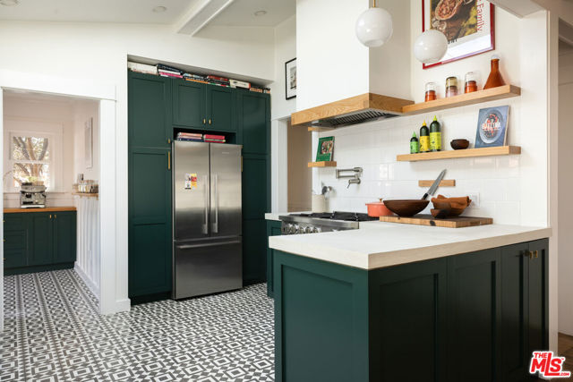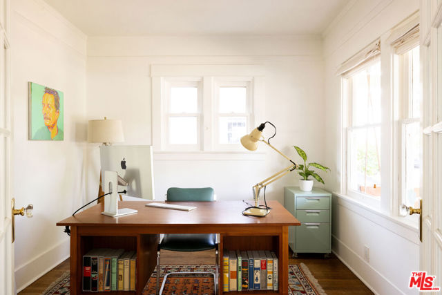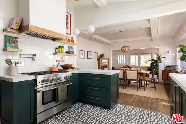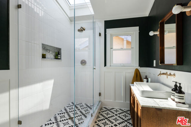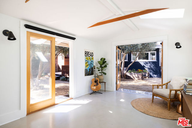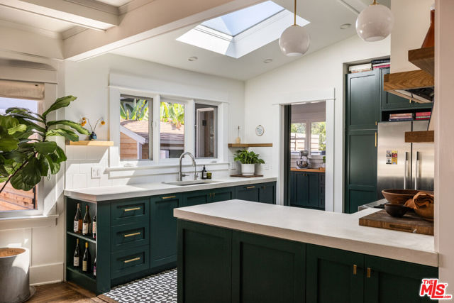 On a storied street lined with century-old homes, this 1913 Craftsman celebrates the best of LA's past and future. This lovingly restored 3 Bed|2 Bath, 1,572-square-foot residence is nestled between Leimert Park and West Adams, placing you in the heart of two of the city's most vibrant and welcoming communities. Upon entry, you step into a softly lit living room anchored by an original fireplace. Through French doors to your right, you'll find a brightly lit home office or guest space with a garden view.At the center of the home, the chef's kitchen sets the stage for hosting and gathering under soaring 14-foot ceilings, a massive skylight, and a gracious breakfast nook. A professional Bluestar range, Bosch dishwasher, and Fisher Paykel refrigerator complement custom Cltile encaustic tile, white concrete countertops, and stainless and brass fixtures that add warmth and texture.The primary suite serves as a private retreat, complete with a walk-in closet and a serene ensuite bath with a sky-framing skylight, blending classic craftsmanship with modern design. With two additional bedrooms and a second full bathroom, the home's layout is designed for flexibility, offering room for work, play, or guests without compromising flow.Sunlight filters through walls of windows, casting a warm glow on original details and thoughtfully chosen finishes.French doors open to a hardwood deck with a built-in cedar hot tub or plunge pool, custom benches, and an outdoor shower. The drought-tolerant backyard doubles as an alfresco dining space, complete with a built-in kitchen featuring a barbecue, stainless countertops, refrigerator, and wood-fired pizza oven under the shade of three mature olive trees. The fully reimagined 270-square-foot flex space serves as a workshop or studio, with exposed Douglas Fir beams, eastern-facing skylights, top-coated concrete floors, and mini-split HVAC. Wired for multiple workstations and a screening area, it is ready for creative ambitions.A welcoming neighborhood with block clubs, book clubs, and active WhatsApp groups surrounds you. Just minutes from the Coliseum, LAFC, Exposition Park's museums and rose garden, and dual-language preschools, the home offers exceptional convenience. Centrally located to DTLA, Culver City, and the beaches, South LA Cafe and Fuegos LA are only a short stroll away. Every detail of this home invites connection, craftsmanship, and ease. Timeless architecture meets a life well lived, equal parts intimate retreat and entertainer's paradise, in one of Los Angeles' most dynamic neighborhoods.