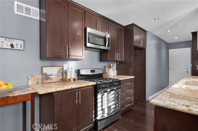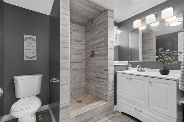 Beautifully upgraded 5-bedroom, 3.5-bathroom home in North Fontana! This spacious residence features a versatile floor plan with four bedrooms downstairs, including a primary ensuite with a fully tiled bathroom, plus an additional full bathroom on the main level. Upstairs offers a bedroom, full bath, office/den, and private balcony, perfect for extended living or a home office setup. Recent upgrades include a NEW roof, fresh interior paint, and upgraded baseboards. Bathrooms are tastefully remodeled with modern tile finishes. The large cemented lot provides ample space for parking and entertaining, complete with a covered patio and convenient half bath access. Your backyard is perfect for entertaining family and friends. Enjoy RV parking, gated entry, and plenty of outdoor space for toys or gatherings. Conveniently located near schools, shopping, dining, and freeway access, this property is move-in ready and designed for comfort and functionality.