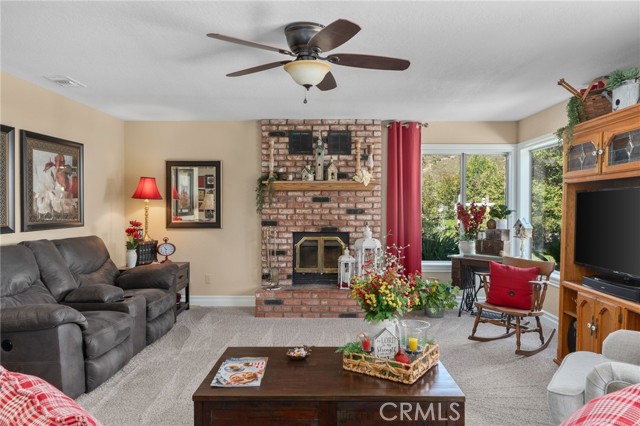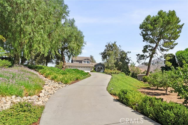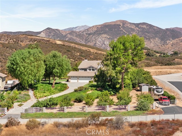 First Time on the Market! This impeccably maintained and tastefully upgraded 4-bedroom, 3-bath home offers 2,275 sq ft of comfortable living space on a beautifully landscaped 1-acre lot—zoned for horses and brimming with charm. Enjoy spectacular mountain and water views from your own private oasis, where nature and serenity meet luxury and convenience. Inside, discover a spacious layout featuring a formal living and dining room, an open-concept kitchen with double electric ovens, and a cozy family room anchored by a zero-clearance wood-burning fireplace. Ideal for multi-generational living, the home includes a bedroom and full bath on the main level. Outside, delight in your personal orchard with peach, plum, apple, orange, and nectarine trees, plus a park-like backyard perfect for entertaining. Relax under the gazebo, soak in the Tuff portable spa, or watch the kids play in their very own playhouse. Additional outdoor features include a garden swing, birdhouse arbor, and automatic sprinklers covering all landscaping. Practical upgrades include a motorized sliding gated driveway, RV pad with 50-amp service and water, and a 12' x 6' utility shed. With no HOA and a very low tax rate, this property offers both freedom and value. A rare opportunity to own a slice of country paradise with breathtaking views and modern comforts—schedule your showing today!