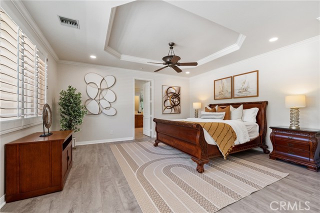 Nestled on one of Spanish Hills’ most desirable streets, this 1.17-acre estate offers refined living with unmatched privacy, fully enclosed by wrought-iron fencing and stucco walls. Just minutes from the country club and adjacent to the golf course, it combines convenience with timeless elegance. Inside, the residence boasts 6 spacious bedrooms—including a grand master suite with fireplace and multiple en-suite bedrooms—alongside 4.5 bathrooms. Expansive living areas include a formal living room, family and dining rooms, and an open gourmet kitchen designed for both comfort and style. A large entertainment room provides additional space for gatherings. Outdoors, the property is an entertainer’s dream, featuring a gas fireplace, pool and spa, fruit garden, and a sprawling patio anchored by a 72” masonry fire pit with ample seating. Mature pine trees enclose the estate on three sides, while manicured lawns, a rose garden, 105 pines, and 30 palms create a serene, resort-like atmosphere. Recent upgrades include two HVAC units (1 year old), water heater (2 years old). Fully remodeled downstairs full bathroom, newer floor throughout the second story, and installed 1300 sqft pavers at the side yard last year. This estate seamlessly blends luxury, tranquility, and natural beauty in one of Spanish Hills’ most coveted locations