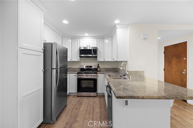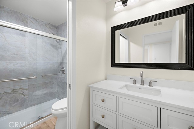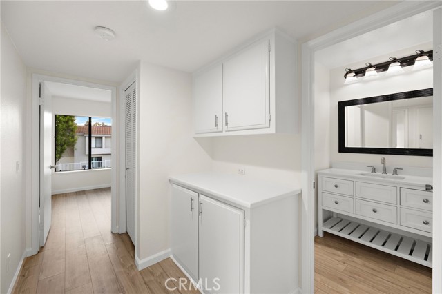 This is it!!! Laguna Niguel gated community of Casa La Paz, 2 Bedroom 1 bath beautifully remodeled condo is walking distance to restaurants, shopping and parks. This home boasts air conditioning, wide luxury plank floors, a remodeled kitchen with updated cabinets and quartz countertops. The bathroom is large with new oversized walk in shower. The open floorplan is warm and inviting with no one above you. The bedrooms are large and the unit features a covered balcony with storage and indoor washer and dryer. Guest Parking is ample and you have exclusive access to one carport with storage and one additional parking space. This gated community has beautiful pool and spa, tennis court and dog park.
