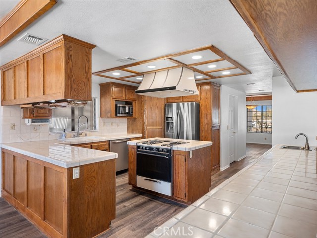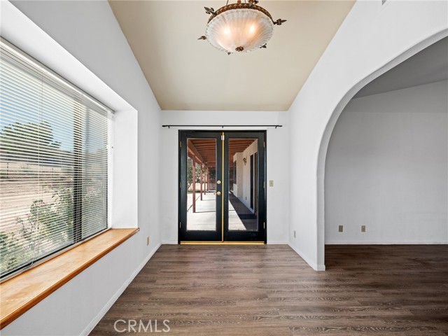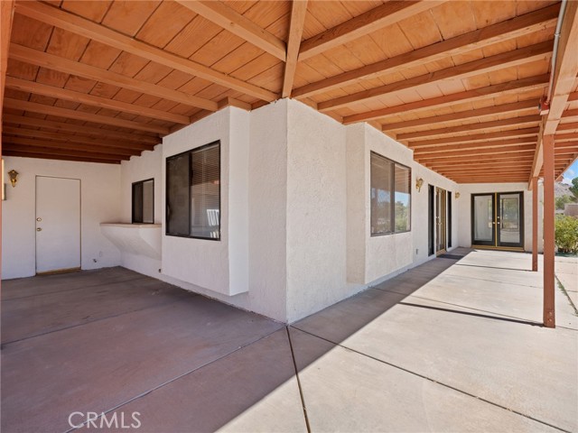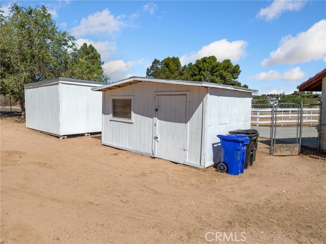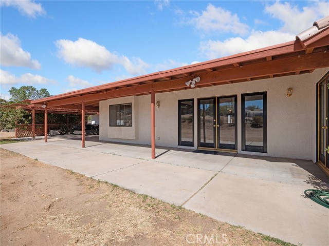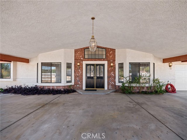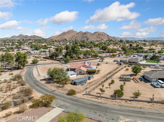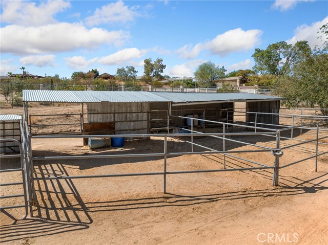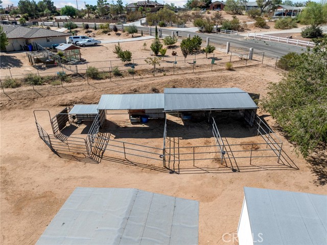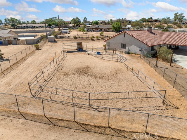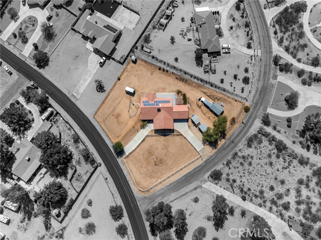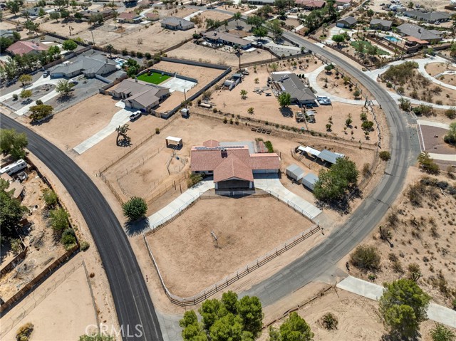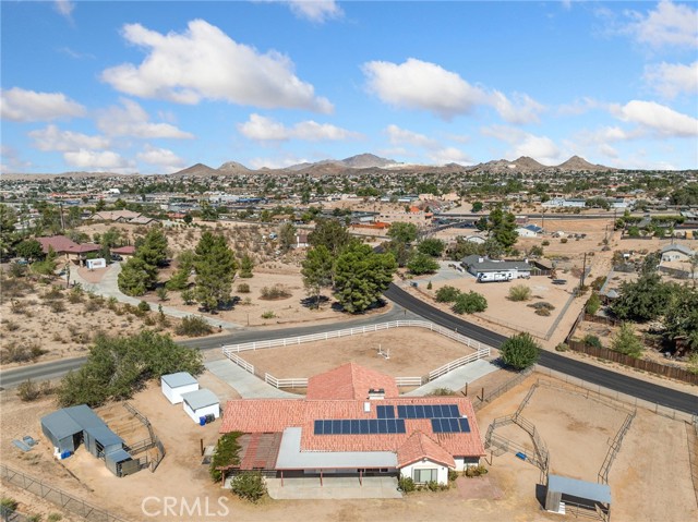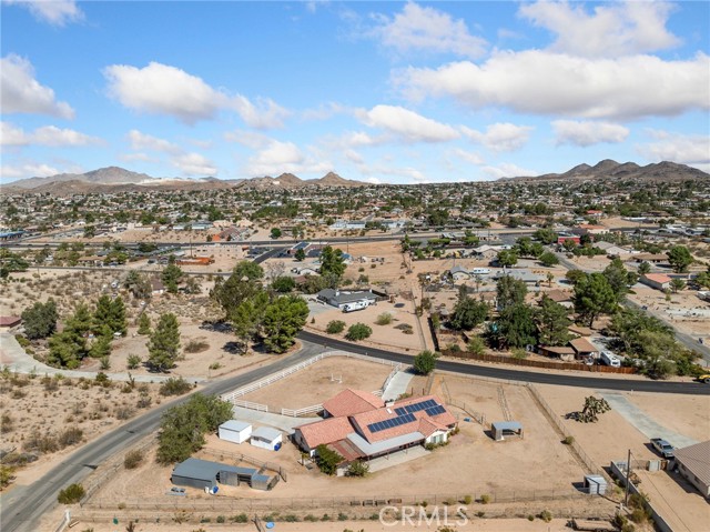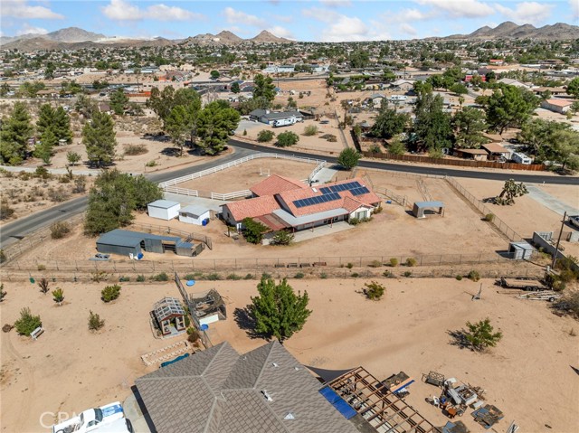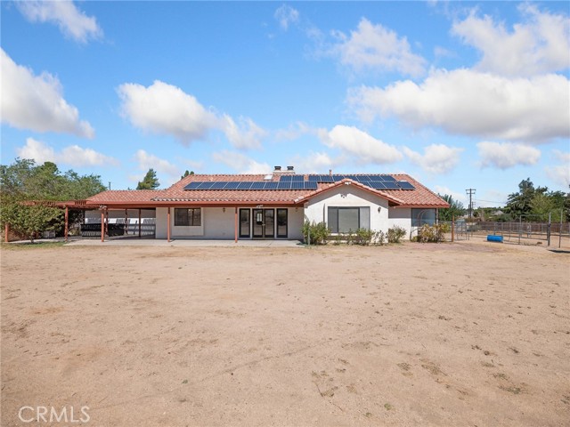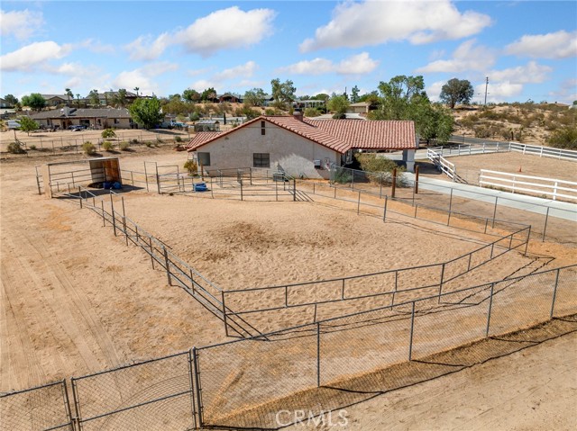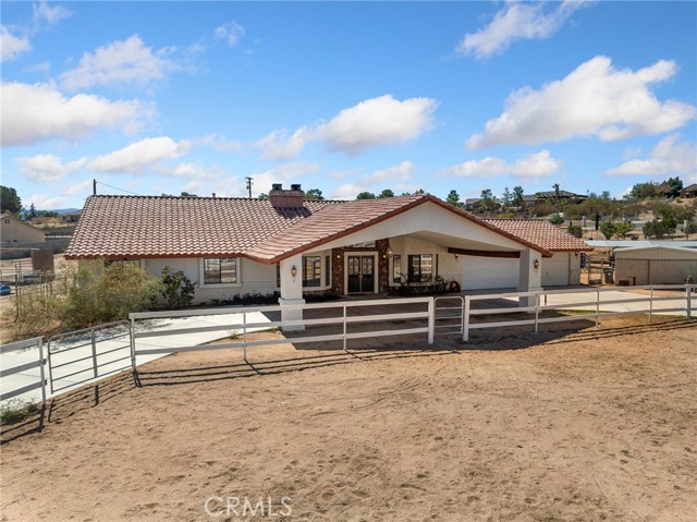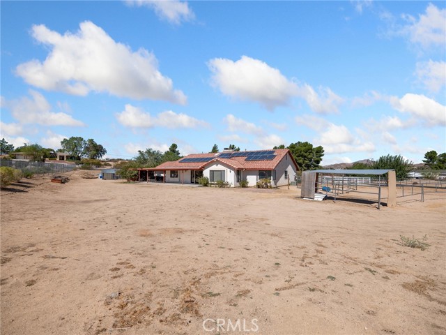 Welcome to this well maintained traditional ranch style home situated on a spacious 1.16 acre corner lot in the highly desirable neighborhood of Desert Knolls. Offering 4 bedrooms and 2.5 bathrooms, this home combines comfort, functionality, and added equestrian amenities in one exceptional package. Step inside the formal foyer and through the arches to the formal living and dining rooms. Perfect for gatherings, the formal living room features a brick accented fireplace with raised hearth and mantel, while the formal dining room provides an elegant setting for entertaining and hosting those special events throughout the year. The Island Kitchen is a chef's delight with abundant cabinetry, a walk-in pantry, an eating area and a generous breakfast bar overlooking and open to the spacious family room. Family room offers a warm setting inspired by another brick accented fireplace with raised hearth and mantel as well as high ceilings, natural lighting from the many windows and glass door that leads to the outside patio area with an intimate spa for relaxation. The primary suite is a private retreat with a sun-filled sitting area, French doors to the outside and a large walk-in closet. The primary bath offers dual sinks, soaking tub and separate shower. Three additional bedrooms are generously sized with mirrored wardrobes. Equestrian lovers will appreciate the improved horse facilities including three corrals with shelters, a hay barn, large turnout with shelter and a moderate arena. The property also features two outbuildings for additional feed and storage. A rounded driveway with drive through portico adds both charm and convenience. Modern upgrades include a nearly new, PAID FOR SOLAR SYSTEM, providing ample energy for a large household and a WiFi security system with cameras and alarm for peace of mind. This property offers the perfect blend of rural living with modern amenities. Don't miss the opportunity to call this exceptional property your new home.