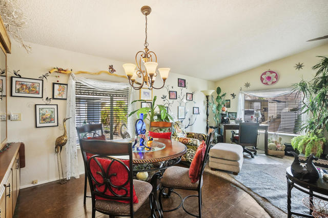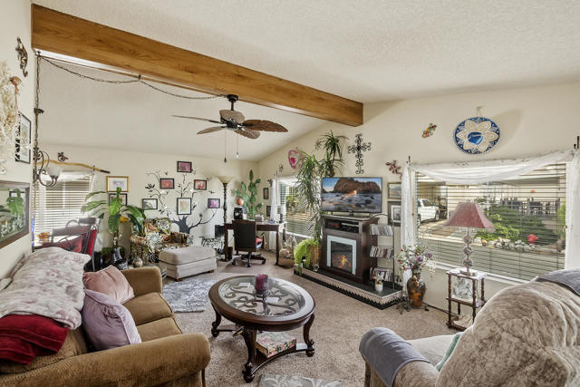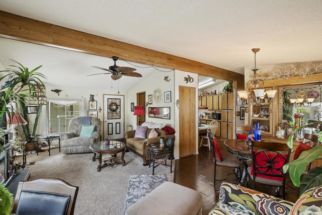 Welcome to family friendly Sky Valley Resort! This 2 bedroom 2 bath home is offered turnkey furnished and absolutely move in ready and located just steps from the main pool and clubhouse. This home is immaculate, new windows, quality trex deck covered patio, laminate flooring, upgraded carpeting, electric fireplace, large pantry, spacious primary bedroom and bathroom, separate laundry room, covered carport, breakfast bar and beautifully furnished. Enjoy the rare and healing hot mineral water in the pools and spas, pickleball, tennis, 2 dog parks, Chapel, Farmers market, and the most friendly neighbors. This is a perfect permanent home or warm Winter vacation home, driving distance from quaint downtown Palm Springs, fine shopping and dining on El Paseo, PGA golf tournaments, tennis tournament, art festivals, Coachella music festivals and so much more!
