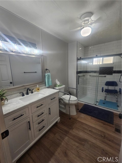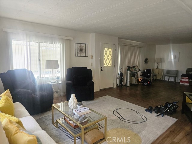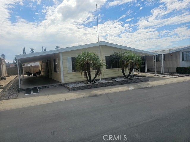 What's New? EVERYTHING!! within one year to now! Newly installed $8000.00 REMODELED HANDICAPPED Walk-In Shower in Primary Bathroom, including NEW fixtures, commode, sink & vanity cabinets; NEW commode in 2nd Guest Bathroom, NEW paint & NEW Laminate flooring throughout, NEW kitchen sink, faucets & lighting with TWO Pantries and a circular BREAKFAST BAR; NEW Blinds for the many windows; In a separate room is the laundry area with NEW washer & Dryer less than one year old, counters and storage, could be used as an office too! NEW ROOF 2021, Plus Wall to Wall Closet in H-U-G-E Primary Bedroom. THIS HOME BOASTS OF "NO HALLWAYS", perfect for handicapped accessibility. Light & Bright, INCREDIBLE AMOUNT OF STORAGE throughout this gorgeous home too! So much more to say.....with the low profile entrance, no steps, the full length covered side patio with privacy panels, room for gardening or ? in the back of the home. Orange Grove is the Best & Finest All Age Communities in prestigious Redlands, offering a serene, quite atmosphere for their residents. Lots to do and participate in when the Community Rec Hall doors open for POTLUCKS, BINGO NIGHT, SOCIALS, COFFEE KLATCH, POOL/BILLIARD TABLES & GYM/EXERCISE RM too. Enjoy the outdoor pool & jacuzzi, family BBQ & Picnic area and all of the wonderful residents that call Orange Grove Mobile Estates home! (Ser#A/B5468) Did I mention RV Parking is available for only $40.00??? Make that phone call today and let's get you Pre-Qualified. Lot rent for this home is only $939.72. WOW!