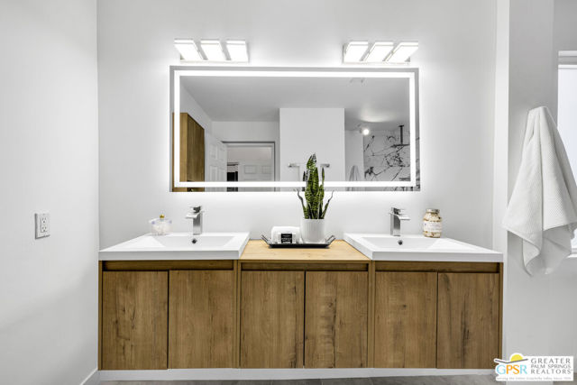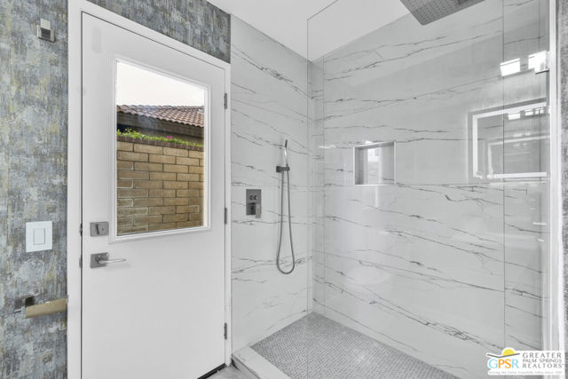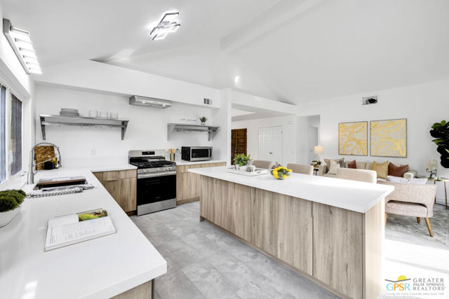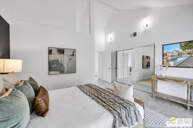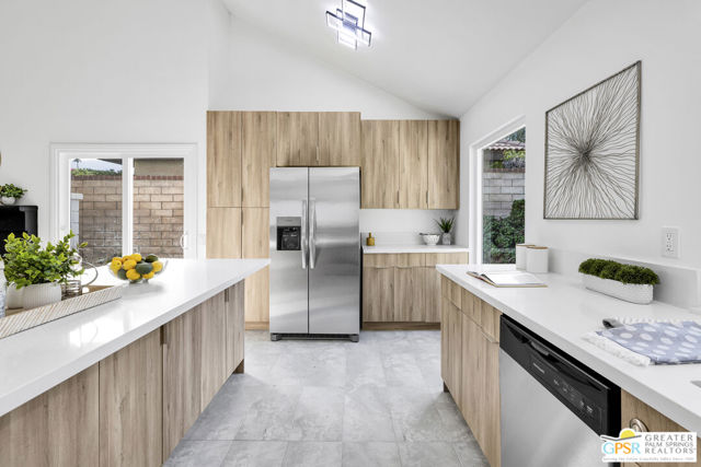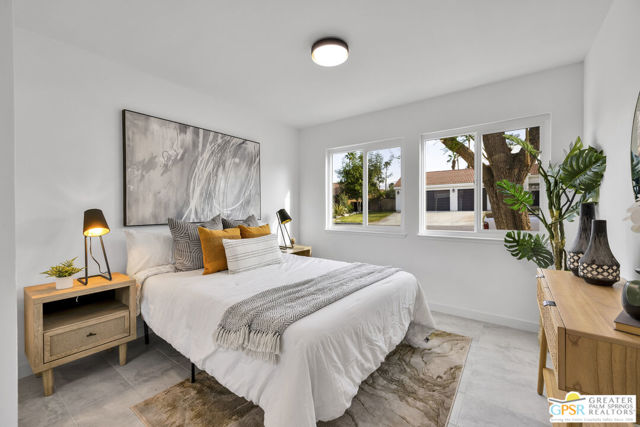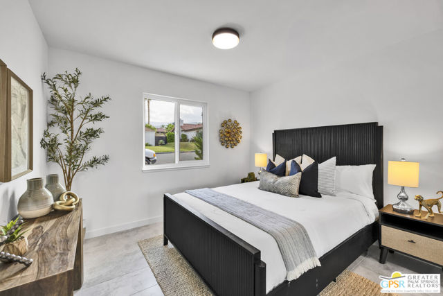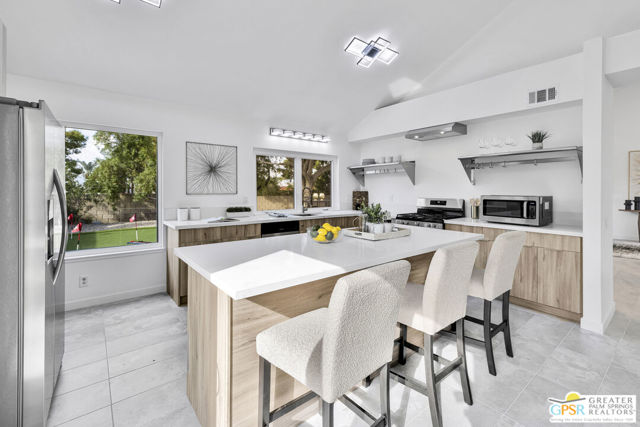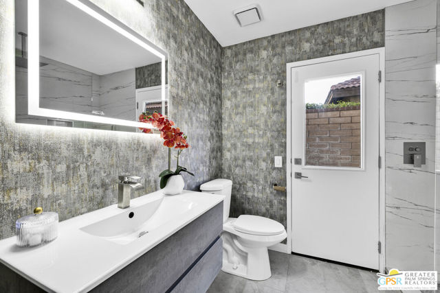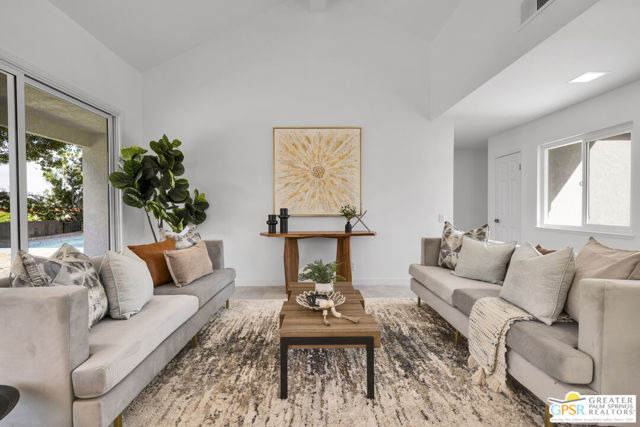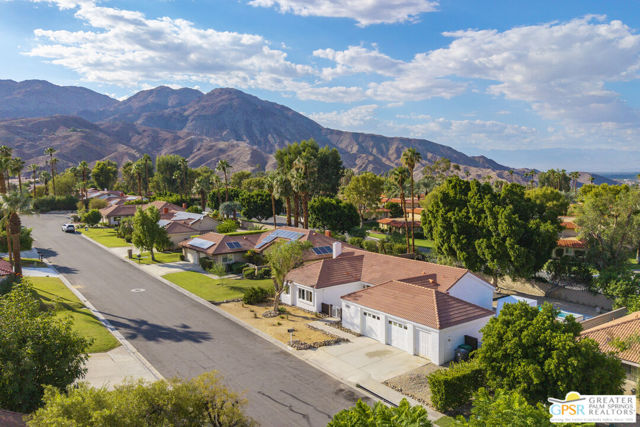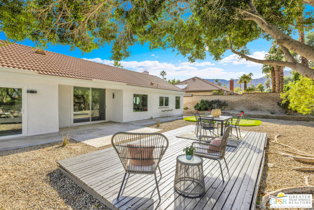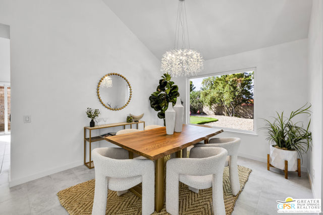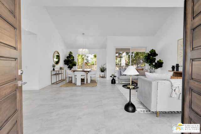Elegant Modern Contemporary home located in Palm Desert's desirable Canyon Cove. Entire property has been artfully restored and reimagined far beyond its original concept. Built in 1985 it has 3 beds, 2 baths. Its huge expansive living room, dining room and sitting room while maintaining their own private locations all flow to one gorgeous light filled space. Situated withing skipping distance from El Paseo (Palm Desert's Rodeo Drive) with its chic shops, dining establishments and art galleries. This the property has NEW "almost" everything, a partial list; Kitchen, Bathrooms, Dual Pane Glass Throughout, Doors, Floor Tile, ALL Appliances, Pool and Spa plaster, Tile and Motors. Extra unique features include a Gazebo, Putting Green, Bocce Ball Court, Large wooden open air Deck with seating under a gorgeous shade tree, a pass thru bar from kitchen for refreshing cocktails after strenuous putting session. 3 car garage with separate doors. The entire house is exquisite, the kitchen is a chef's delight, with beautiful cabinetry, hardware and countertops. A huge island that seconds as a breakfast bar and a unique set of metal shelves flanking the stove. The light fixtures throughout the entire house are movie set quality. Come see, you'll love it. It is Truly SMASHING