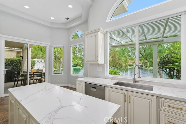 Lovely single story unit on the lake in the Country Club Villa’s. Remodeled unit includes 2 bedrooms, 3rd bedroom closet removed. Office currently built in laundry room, however all plumbing to turn back to laundry room is in tact. Beautiful view of the lake and terraced patio’s great for entertaining. Private atrium with built in bar opens to living room, dining room and den. Secondary bedroom with en suite bath has been completely remodeled. Separate powder room for guests. Primary suite with 2 separate closets, 2 sinks, large soaker tub and walk in shower. Two car garage with golf cart garage. This unit has direct garage entry from primary bedroom. Recently remodeled kitchen with center island and new appliances. Ceramic tile floors throughout, plantation shutters and new front door. Items left at unit are negotiable.