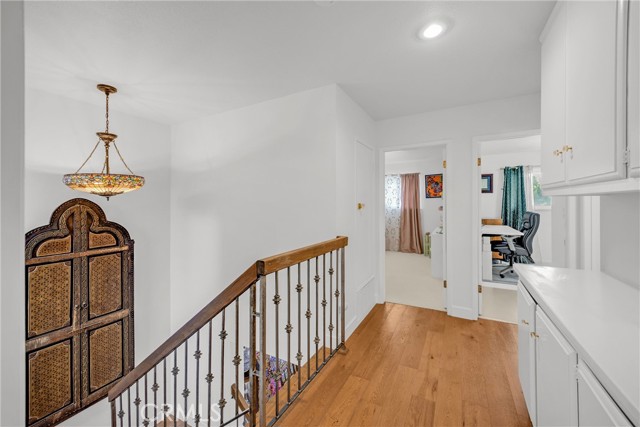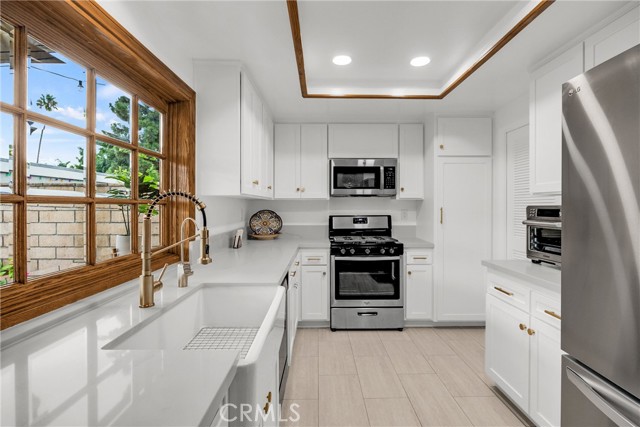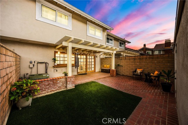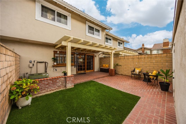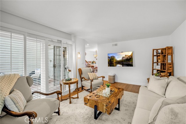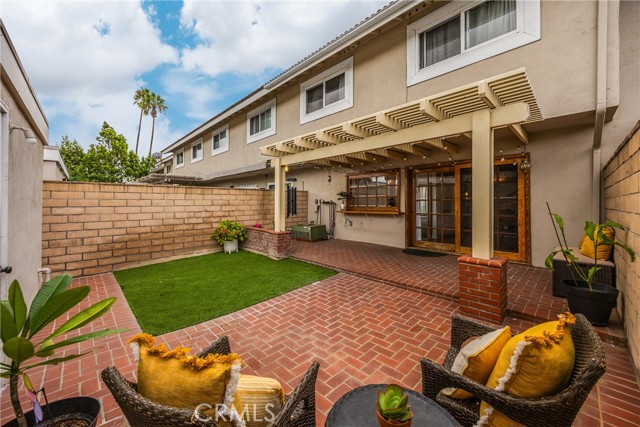 Beautifully Updated Townhome with Custom Designer Touches! This stunning townhome has been thoughtfully remodeled over the past few years with exceptional quality and attention to detail. Highlights include new oak hardwood floors, stair railing with custom handwrought iron balusters, and elegant crystal doorknobs throughout. The inviting living room features plantation shutters, a cozy brick gas fireplace, and serene views of the front brick patio and lush greenbelt. The artfully modernized kitchen boasts custom cabinetry with high-end hardware, quartz countertops, a farmhouse sink with pull-down faucet, and a charming beveled glass mullioned window overlooking the patio. The adjacent dining room, with a matching beveled glass sliding door, creates a seamless indoor-outdoor connection—perfect for entertaining. Stylish finishes continue throughout with oak hardwood floors, elegant gray tiles in the kitchen and baths, and plush herringbone-patterned carpet in the bedrooms. All three bathrooms have been beautifully updated, with two featuring furniture-quality vanities, new sinks, and modern faucets. The spacious primary suite offers plantation shutters, a wall of mirrored closets, and a private bath with a tiled step-in shower and a newer toilet with bidet feature. Storage is abundant, with large bedroom closets, a wall of linen cabinetry, generous kitchen storage, a sizable under-stair space, and built-in shelves and cabinets in the two-car garage. Behind the scenes upgrades include Sensi smart thermostat, newer furnace, and an amazing Phyn smart water sensor system which will turn off your water supply as soon as it senses a leak! The private, partially covered, brick patio pairs perfectly with the low-maintenance artificial grass, ideal for soaking up California’s beautiful weather without the hassle of yard work. Located in the sought-after gated Valley View Park Townhomes, this intimate community features a pool, spa, and clubhouse, with manicured greenbelts and mature shade trees right outside your door. Just open the windows and enjoy the refreshing coastal breeze that comes most days! Highly rated, award-winning Garden Grove schools! Ideally situated near the 22 and 405 freeways, this home offers quick access to Cal State Long Beach, Sunset and Bolsa Chica beaches, as well as shopping, dining, and entertainment. Even better, Starbucks is only a mile away for your morning coffee run! Experience the perfect blend of style, comfort, and convenience.