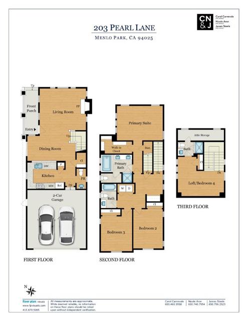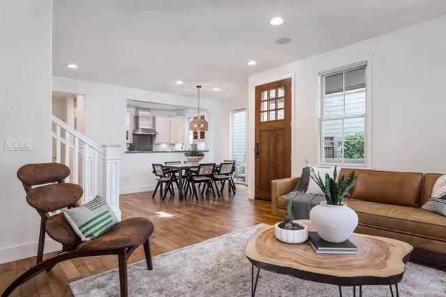 Positioned across from the tree-lined central park with playground, this Craftsman-style home is located in Morgan Lane, a community of 56 single-family homes built in 2008 by Taylor Morrison. Inviting curb appeal showcases a shingled exterior and covered entry framed by classic tapered columns. The three-level design has 4 bedrooms and 3.5 baths arranged for todays lifestyle with adaptability for private office space if needed for remote work. The main level is open concept for living and dining with a gas-log fireplace, recessed lights, sliding glass door to a private patio. A wide pass-through connects to the kitchen where white cabinetry is topped in granite slab and premium appliances include a Wolf gas cooktop and Sub-Zero refrigerator. On the second floor, the primary suite features a walk-in closet and luxurious bath with oversized tub, and two additional bedrooms share a hallway bath. The top floor hosts a loft-style bedroom with its own bath making it also ideal as a guest suite, media lounge, or office. Linfield Oaks is an ideal location minutes to downtown Menlo Park and Palo Alto, Stanford University, Meta headquarters, and Highway 101 to all of Silicon Valley. Excellent Menlo Park schools.