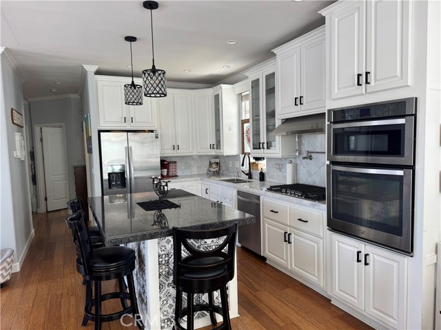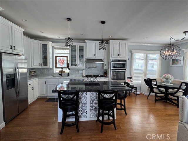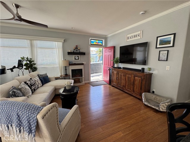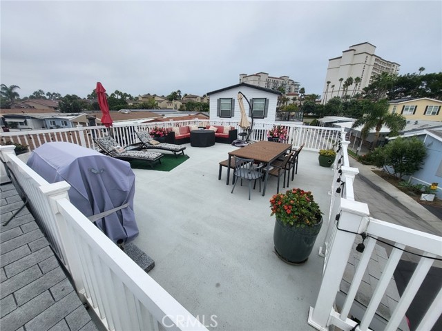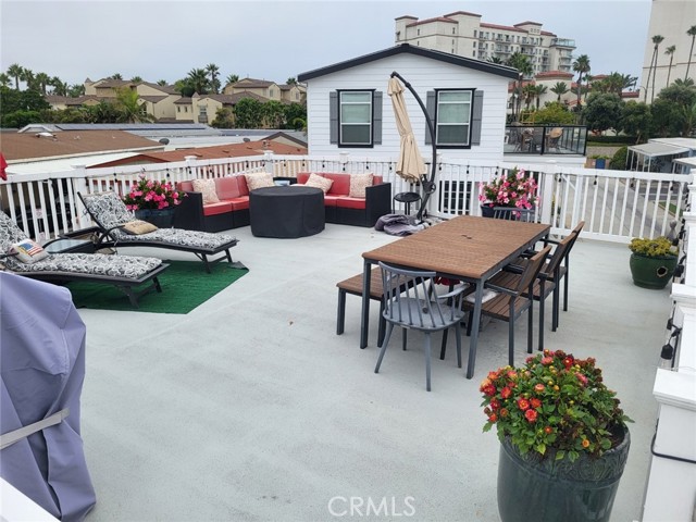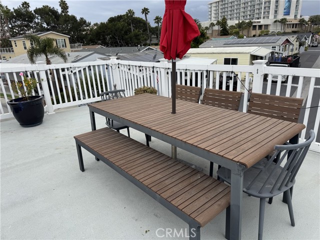 This is your little slice of paradise just waiting for you to relax and enjoy! Sit back on your roof top patio and enjoy the beautiful Southern California sun or a cozy fire at night.. The exclusive corner lot offers views of Pacific City and the sound of the waves. The beach is just out the park back gate and Pacific City mall is less than a block away featuring shops and restaurants. The famous Huntington Beach Pier is just ½ mile away along with Main Street filled with entertainment and foody places. The near places are endless from this location. Ride your bike along the flat bike path that stretches from Newport Beach to Sunset Beach. The home itself is 3 bedrooms and 2 bathrooms and features bamboo floors throughout with 9 foot ceilings and cove finishes on walls. The kitchen is a chef’s delight with granite and marble counters along with a built-in pot filler, a hot water ready tap and a built-in beverage fridge on the island. The home also features two decks to enjoy sitting either in the cozy wind and water proof cubby spot custom built or the 640 square foot rooftop deck perfect for entertaining and taking in the fireworks or annual air show. There is a dog yard with custom pet turf installed along with fencing and gates. The master bedroom is a retreat with a large bathroom and huge walk in closet. In the driveway is a “mini” garage for tools, bikes, surfboards, etc. There is an additional custom shed large enough to hold all the holiday bins and extra storage items. The exterior of the house was painted in February of 2025 and new custom rain gutters were installed at the same time. 3 bedroom 2 bathroom 1250 square feet 624 Square Foot Deck Large BBQ with Built-In Propane All Outdoor Furniture Included Bike garage Storage sheds Landscaped Dog Yard Fenced In New Exterior Paint New Gutters Beverage fridge in Island Walk-in closet A/C and Central Heating Tankless water heater Heated Pool and Hot Tub Gym and Clubhouse 2 Car Driveway (bonus at the beach) Beach is less than 5 minutes away from Downtown Main Street or to Pier is less than10 minutes away from Pacific City Mall across the street Best Seats At Home For 4th of July Fireworks and the annual Airshow