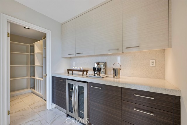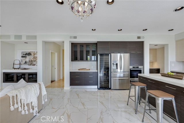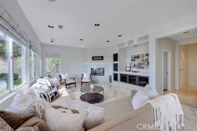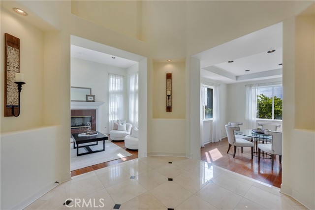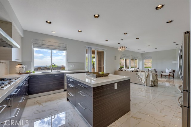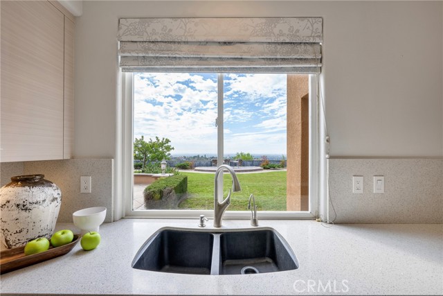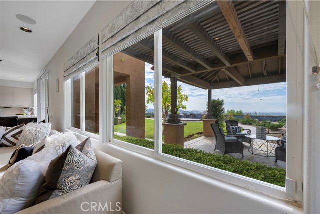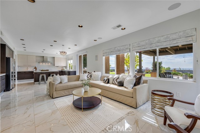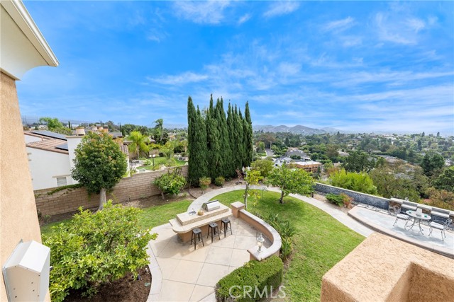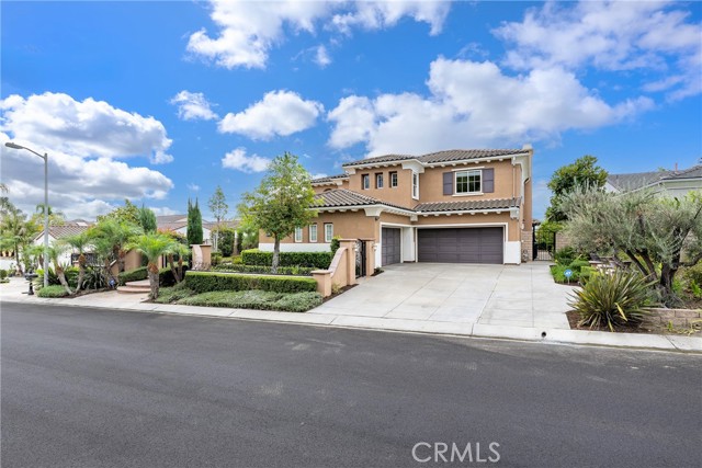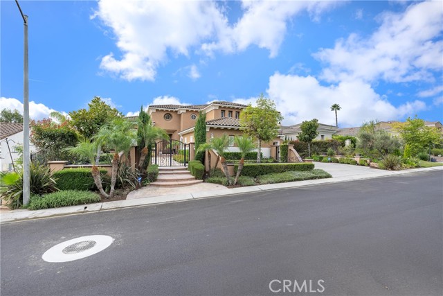 Unobstructed City Lights, Catalina & Ocean VIEWS abound from this exceptional home located in prestigious gate guarded Portofira Estates. The property is Perched on a hill located on a single loaded Street. Enjoy Ocean breezes & spectacular sunsets from your backyard that is suitable for intimate or large-scale entertaining. Many verities of fruit trees enhance the yard. Enter the property through a private gated Courtyard that leads to the dramatic entry with art niches and marble flooring. Step down to the Living Room with Fireplace & Dining room Adjacent the. large butler's pantry with SS wine/beverage refrigerator. and walk in pantry. The gourmet remodeled kitchen with SS oven, dishwasher, microwave, 6 burner cooktop, refrigerator, center island & Quartz countertops, is open to the expanded family room with fireplace. There is a downstairs bedroom suite with walk in closet, & full bath. Office, and large Laundry Room with sink and extensive storage. The magnificent gallery hallway leads up the stairway to the luxurious master suite with fireplace, walk in closets, tub, & glass enclosed e shower. Dual separated vanity areas. Large Balcony off the master suite offers exceptional VIEWS and Sunsets. There are 2 additional bedrooms upstairs, with a shared bath, and one bedroom with a full bath. Oversize 4 car garage with built ins and epoxy coated floors. The home has been recently painted inside. Meticulously maintained and cared for by the original owners. Close to freeway access. One of the premier VIEW oriented Gate Guarded Communities in North Orange County.