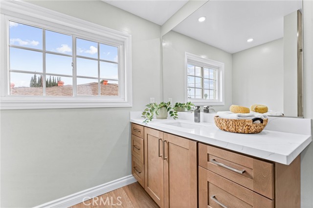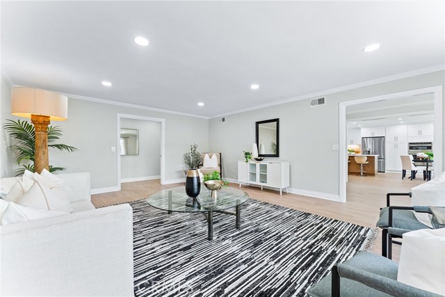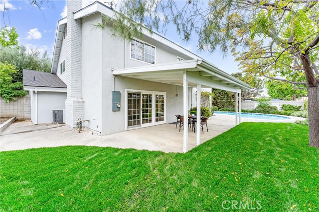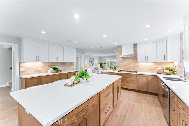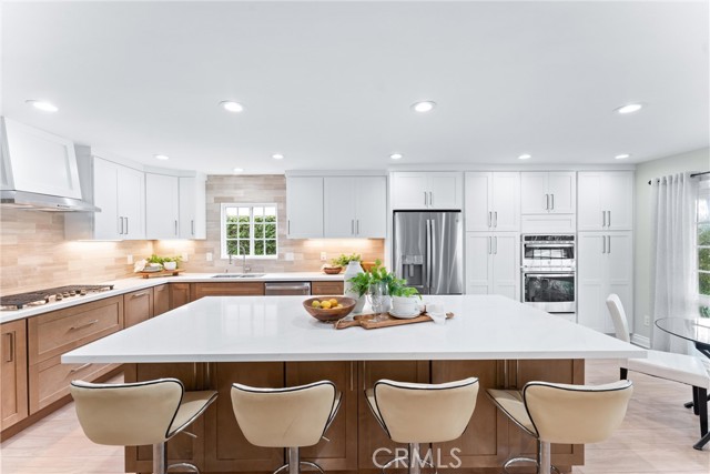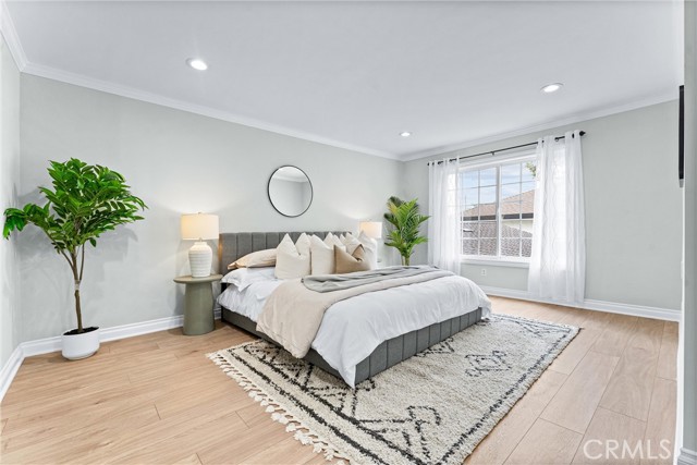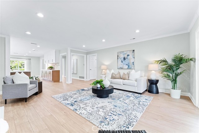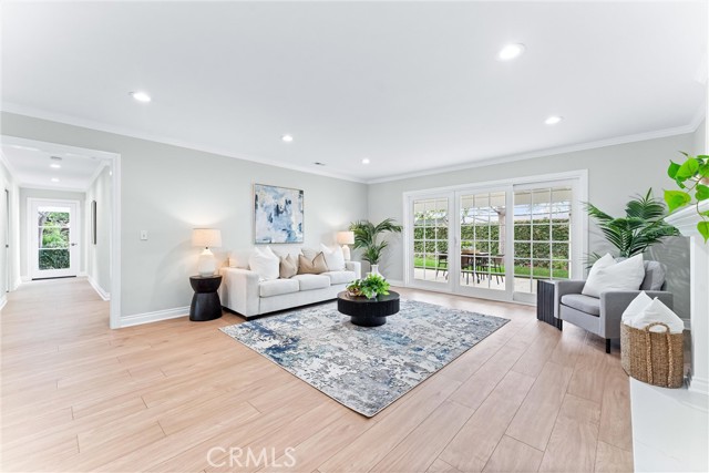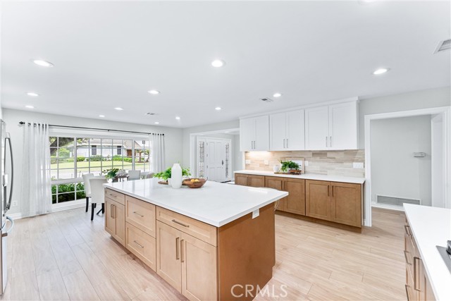 Step into comfort, quality, and thoughtful design in this beautifully remodeled two-story home, perfectly situated in the highly desirable Meredith Acres community of Orange. With four bedrooms and four bathrooms, this residence offers a flexible floor plan suited to a variety of living needs. On the main level, a private bedroom and adjacent three-quarter bath provide an ideal setup for guests, extended family, or a home office. At the heart of the home is a stunning chef’s kitchen, featuring quartz countertops, a large center island with bar seating, stainless steel appliances, soft-close cabinetry, and a full-height designer backsplash. Light pours into the open living and family rooms, enhanced by recessed lighting, crown molding, and a cozy fireplace. Upstairs, three more bedrooms include two with private en suite bathrooms. The spacious primary suite offers a spa-inspired bath and generous closet space, while the secondary suite includes its own walk-in closet and full bath, perfect for an older teen, extended family member, or long-term guest. The backyard is a peaceful retreat, with a sparkling pool, mature landscaping, and a covered patio designed for outdoor dining and relaxation. Additional highlights include a brand new roof, a three-car attached garage with new doors and openers, and a host of thoughtful upgrades throughout. Located within walking distance to Orange Lutheran High School and top-rated Villa Park public schools, this move-in-ready home delivers style, function, and location, an exceptional offering in a sought-after neighborhood.