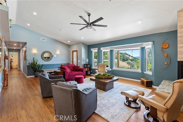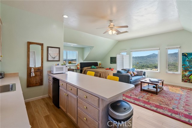 Welcome to this beautifully updated 3 bedroom, 2.5 bathroom home plus studio on ~ 5 gated acres, offering privacy, panoramic views and exceptional functionality. With 2140 sf of stylish living space in the main home and a 672 sf detached studio above the garage, this property is ideal for multi-generational living, guest space or rental income. Step inside to find luxury vinyl plank flooring throughout, leading you into a bright living room with vaulted ceilings, a cozy gas fireplace and large windows that perfectly frame the sweeping views. The custom kitchen is a showstopper with quartz countertops, soft-close cabinetry and pull-out drawers—perfect for both daily life and entertaining. The family room connects to the immaculate attached garage, which includes cabinets, a sink and epoxy floors for a clean, finished feel. On the opposite side of the home, you'll find two guest bedrooms and the generous primary suite, featuring vaulted ceilings, a walk-in closet and access to the back patio. The ensuite bathroom includes a dual sink vanity and a beautiful walk-in shower. Outside, enjoy peaceful evenings on the covered back porch, or explore the fully fenced property, complete with multiple sheds, animal shelters and a chicken coop—ideal for 4H projects or animal lovers. The detached 2-car garage includes a 672 sf studio apartment above with a spacious kitchenette, bathroom and large windows offering stunning views. Perfect for guests, extended family or potential rental income. Additional features include owned solar, newer roof, windows and interior paint. Privacy and space to roam, this property truly offers an elevated lifestyle with room to grow, create and enjoy country living without compromising modern comfort. Don’t let this one pass you by—schedule your private tour today! Review the Virtual Tour for additional photos and information.