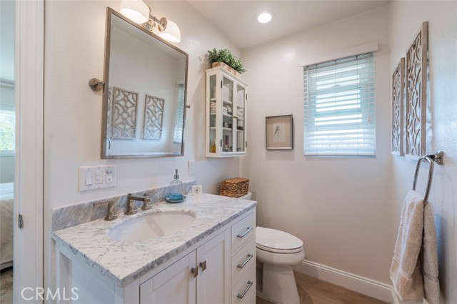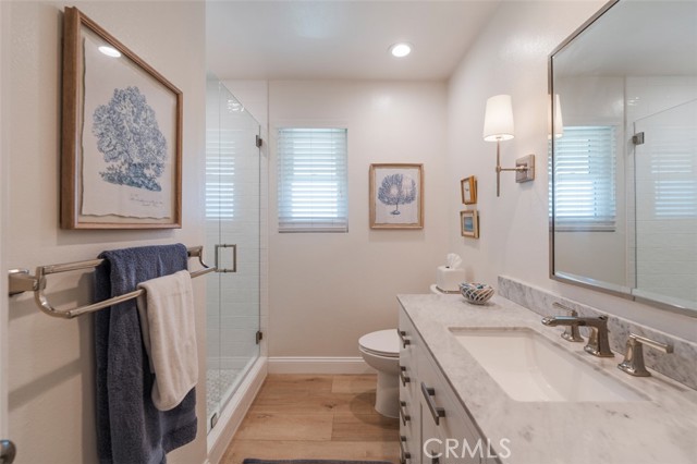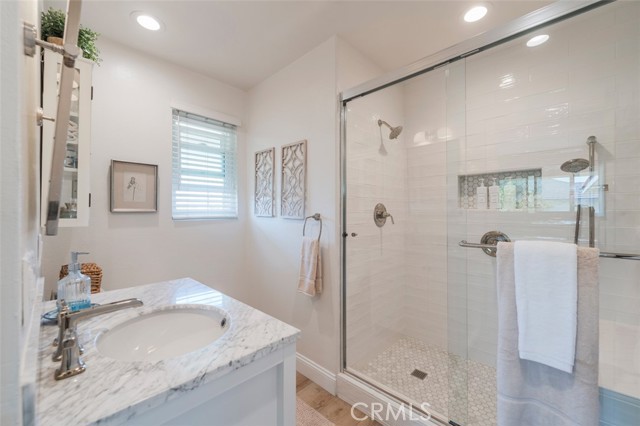 Stunning, Remodeled Upper Unit with City lights and Sunset Views! Tucked away off the main street, this light and bright Coastal inspired home welcomes you in with an open airy floor plan, featuring 2 bedrooms plus a den, optional 3rd bedroom. The living room features a cozy wood burning fireplace and opens to a large expansive, private deck. Gorgeous kitchen with expanded ceiling height, features 42" Shaker cabinetry with glass fronts, Quartz countertops and Stainless Steel appliances, creating an enjoyable cooking and entertaining experience! Bathrooms have been thoughtfully remodeled to extend the ceiling height featuring a beautiful spa- like walk in shower in the master en suite, with 36" height vanities, marble vanity tops and polished nickel fixtures. Handsome wide luxury vinyl plank flooring throughout complete the Coastal look. Relax at the end of the day on one of two peaceful, private decks and enjoy the beautiful sunsets and city lights views! Stroll down to one of 2 pools, play a round of golf or a game of pickle ball or tennis. Lots of fun and wonderful clubs and activities to join with many social gatherings and events! New Horizons is truly 55+ Inspired Living at it's best! (Washer/Dryer and Refrigerator not included in sale).