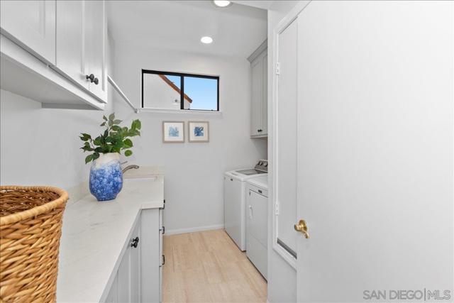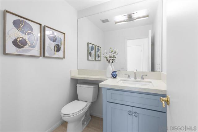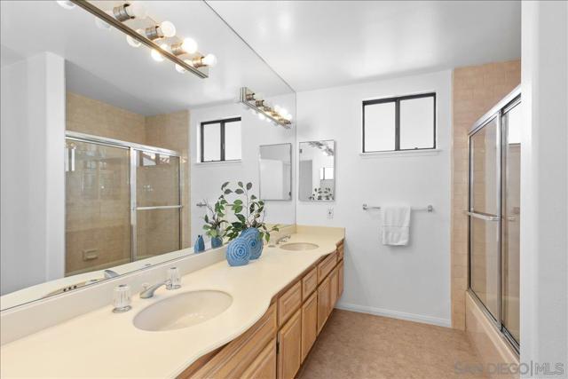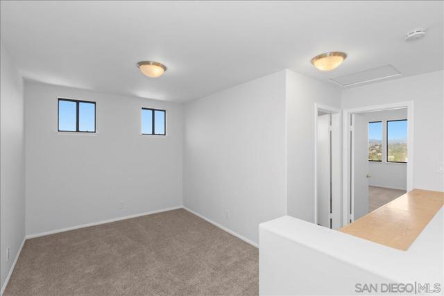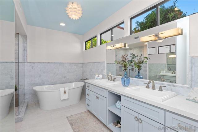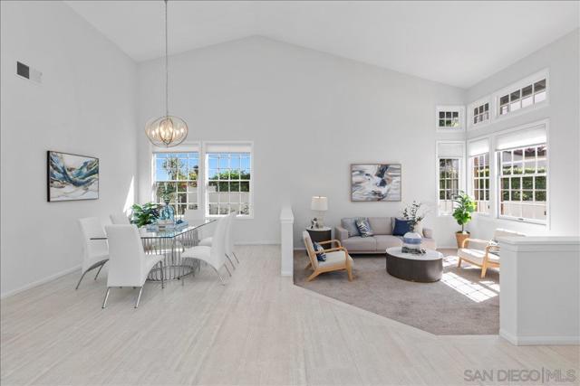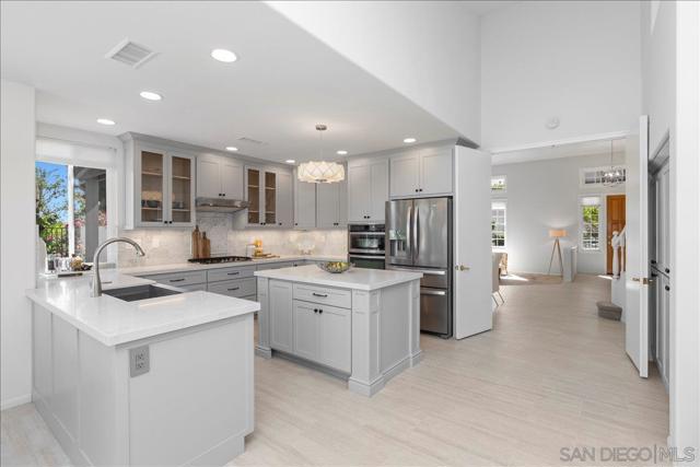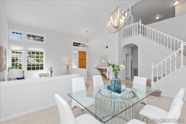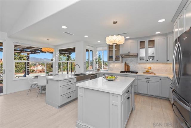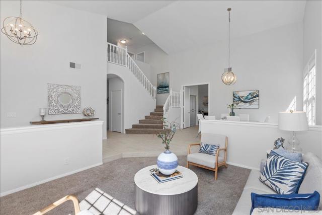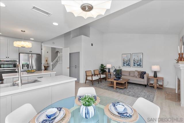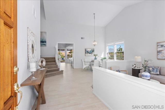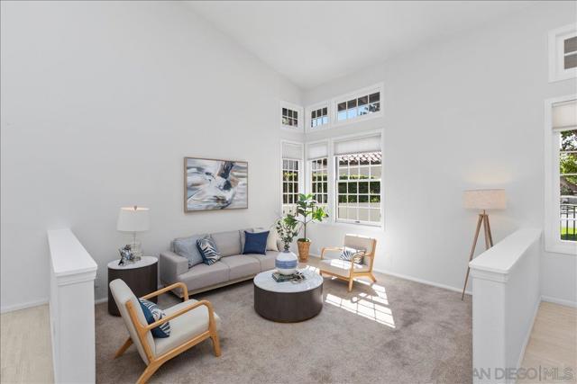 This beautifully updated Eastview home features 3 bedrooms, 2.5 baths, and a loft, and is set on a spacious cul-de-sac lot. The gourmet kitchen boasts slab counters, stainless steel appliances, a farmhouse sink, and center work island. The ground-level primary suite includes a newly remodeled bath with custom cabinetry and designer tile. Additional upgrades include Italian tile flooring, new carpet in the primary suite, recessed lighting, dual-pane windows, and an updated HVAC system. The expansive backyard offers a large lawn, fruit trees, and a covered brick patio perfect for outdoor entertaining. A prime location and close to all that San Diego has to offer makes this property a must-see.