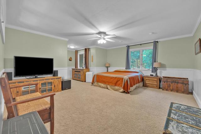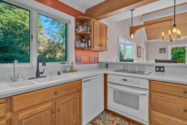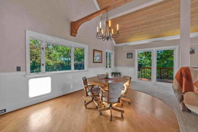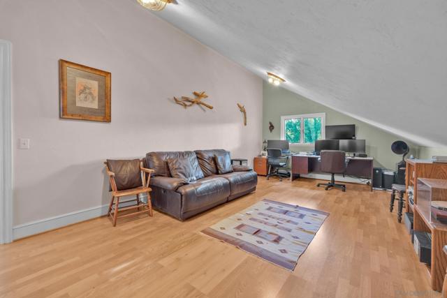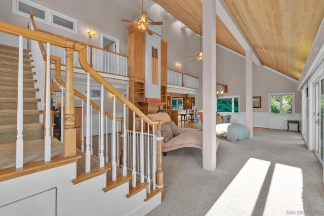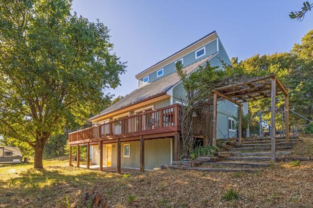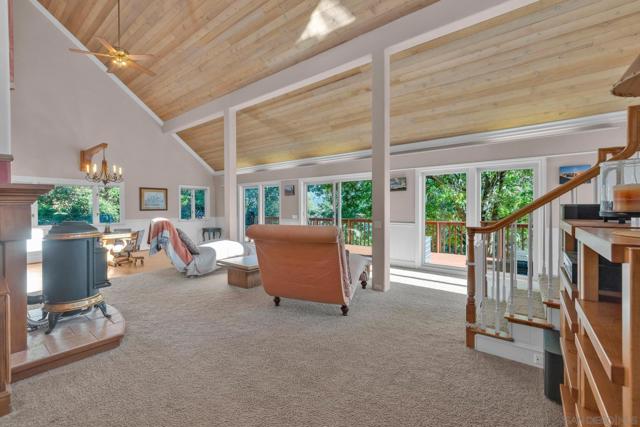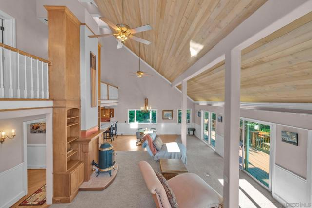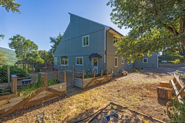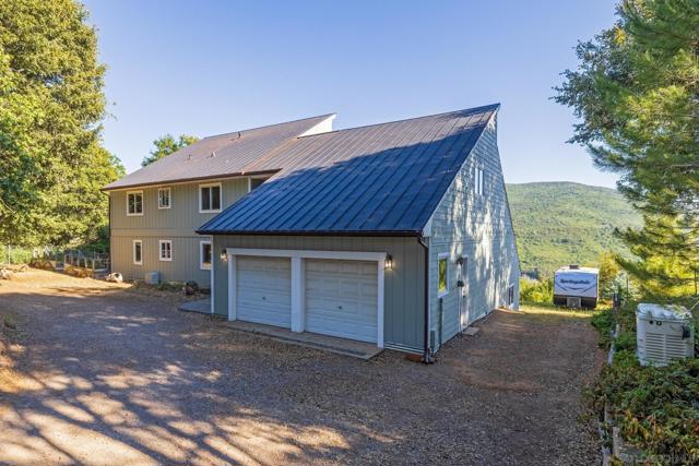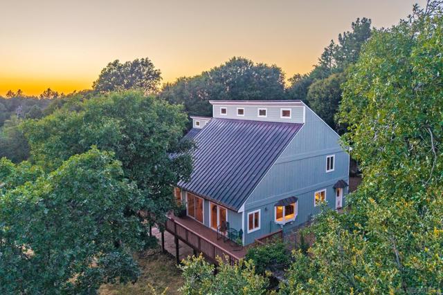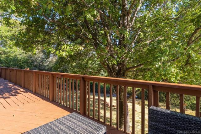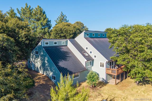 BEST VALUE IN JULIAN & PINE HILLS! Welcome to your peaceful mountain retreat in the desirable Pine Hills community of Julian, CA. This 3-bedroom, 3-bathroom home offers 2,640 sq. ft. of well-designed living space on nearly 0.78 acres, surrounded by a canopy of majestic black oaks and coulter pines—the perfect setting for tranquil, nature-rich living. The main floor features a welcoming living room that opens to a spacious deck—ideal for outdoor dining and enjoying the fresh mountain air. You'll also find a guest bedroom, full bathroom, laundry room, and access to the oversized 2-car garage. Upstairs, the primary suite includes a walk-in closet, en suite bathroom, and a private office, perfect for remote work or creative space. An additional upstairs bedroom also features an en suite bathroom, offering comfort and privacy for guests or family. Additional perks include a walk-out basement, currently used as a large home gym, a roundabout driveway, a thoughtfully landscaped garden area, and a rainwater collection system for irrigation. The copper roof and passive solar system were designed to maximize energy efficiency by capturing and storing heat from the sun (see Documents tab for details), making this home as practical as it is picturesque. Julian is a charming historic town nestled in the Cuyamaca Mountains, about an hour east of San Diego. Known for its small-town charm, gold rush history, and famous apple orchards, Julian is a popular getaway for those looking to enjoy fresh mountain air, scenic landscapes, and a slower pace of life. Real estate in Julian ranges from historic cabins to modern mountain retreats, making it an ideal location for those looking for a peaceful, nature-filled lifestyle with easy access to San Diego.