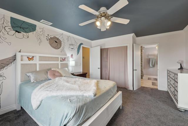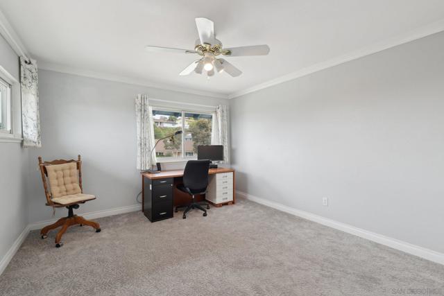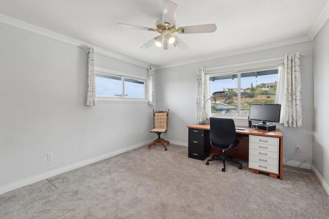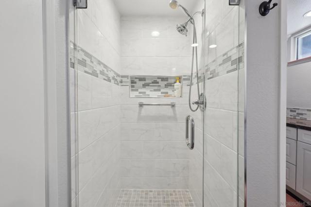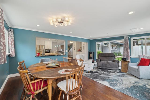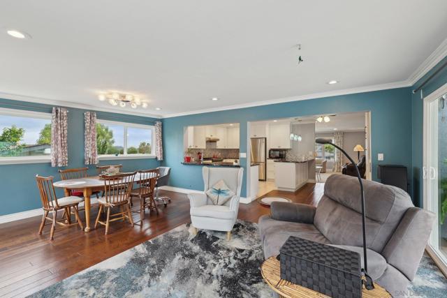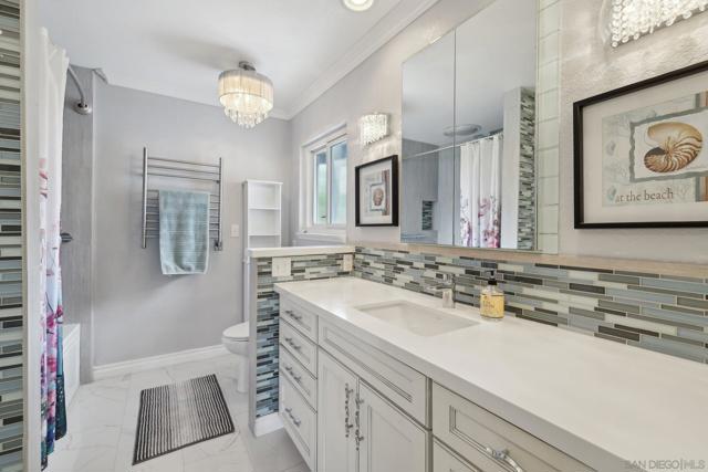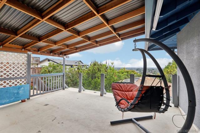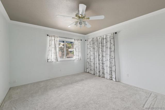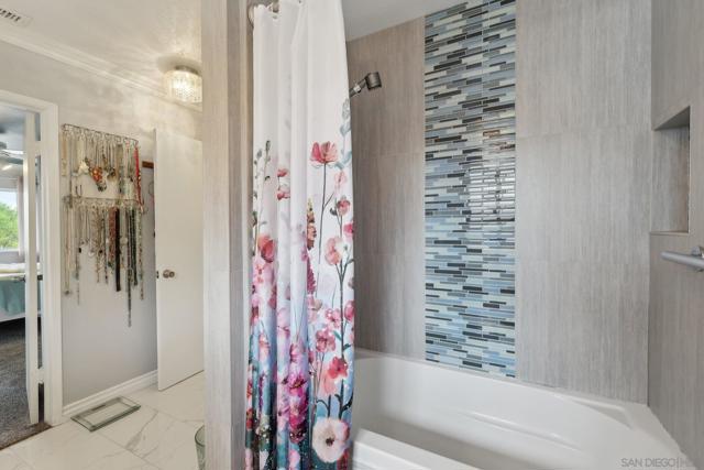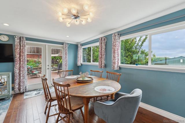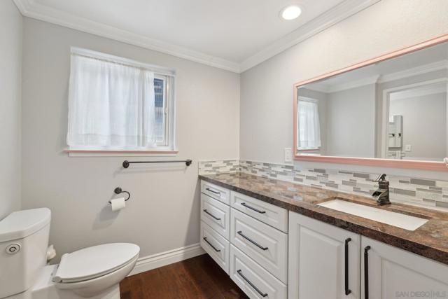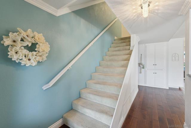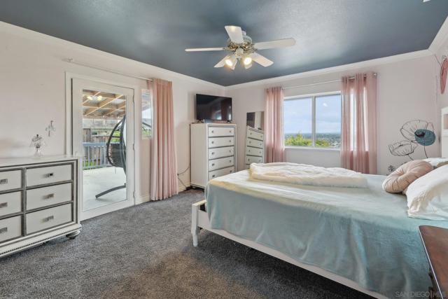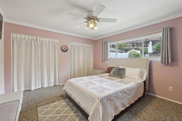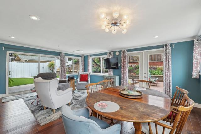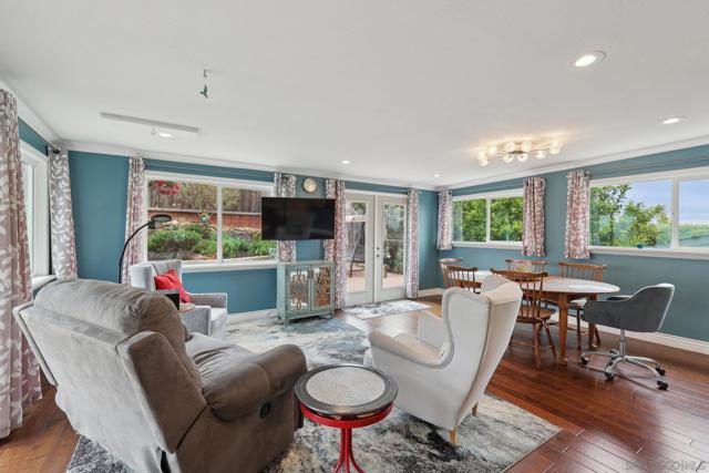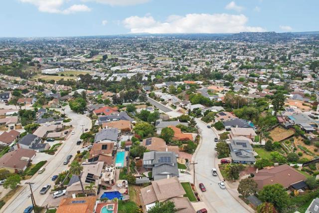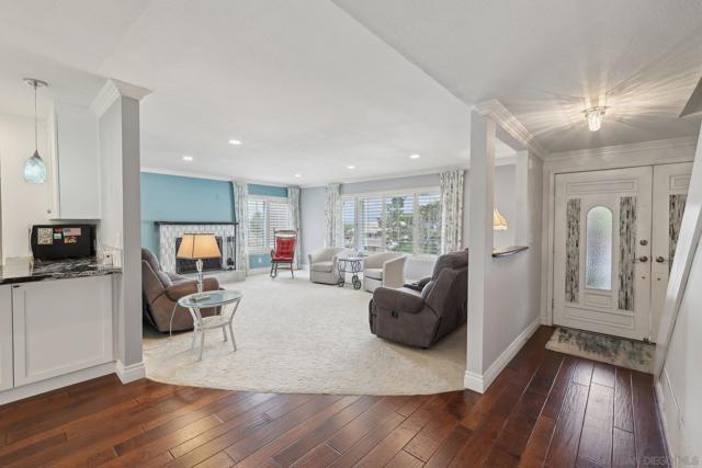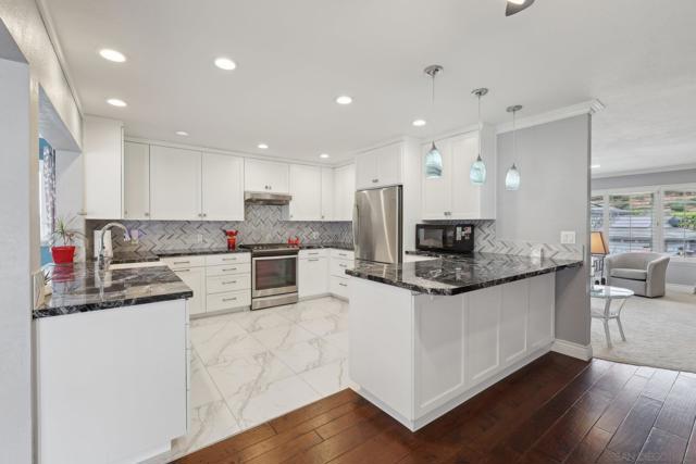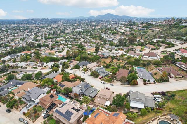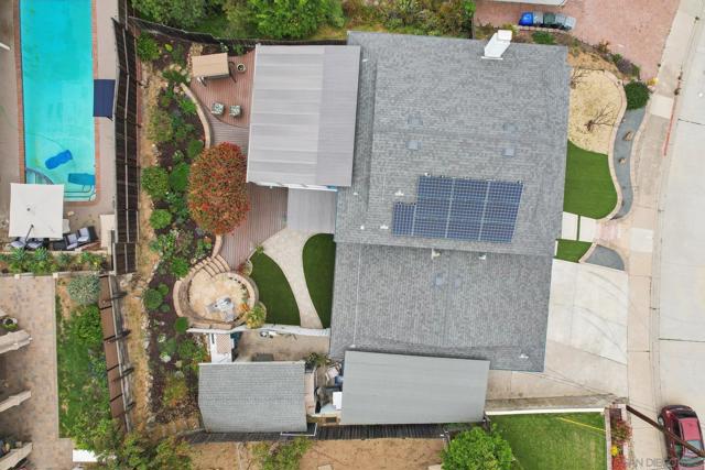 BEAUTIFULLY UPGRADED LA MESA HOME | 4 BEDROOMS + BONUS ROOM | FIRST-FLOOR BEDROOM & BATH | STUNNING MOUNTAIN VIEWS | PAID-OFF SOLAR. This beautifully updated La Mesa home combines exceptional curb appeal with a spacious, open-concept layout and a variety of high-end upgrades throughout. Upon entering, you're greeted by a bright and welcoming living space that flows seamlessly into the kitchen and bonus room, all framed by large windows that fill the home with natural light and offer easy access to the backyard. The first floor features a bedroom and bathroom, ideal for guests, extended family, or a private home office setup. The gourmet kitchen features white shaker cabinetry, dark stone countertops, a wishbone tile backsplash, a farm-style sink, stainless steel appliances, and an oversized peninsula with bar seating. Both bathrooms have been tastefully remodeled with upscale finishes, modern vanities, tile work, and updated flooring. Upstairs, you'll find three additional spacious bedrooms. The primary suite includes access to a private balcony with panoramic eastern mountain views—ideal for morning coffee or relaxing evenings. Throughout the interior, you'll find custom paint, recessed lighting, crown molding, wood flooring, and plush carpet that bring warmth and sophistication to every room. The fully landscaped backyard is perfect for entertaining, complete with multiple seating areas, a composite deck, stacked stone raised walls, synthetic grass, and paver walkways. The side yard offers built-in storage and room for RV or boat parking. This home includes a two-car attached garage, a fully paid-off 10-panel solar system for energy savings, a newer HVAC system, a tankless water heater, and energy-efficient windows. Prime Location: Convenient access to the 8, 94, and 125 freeways. Just minutes from shopping at Grossmont Center, Costco, Trader Joe’s, Target, and local favorites on University Avenue. Close to Helix Charter High School and other excellent La Mesa schools. All appliances convey, all kitchen appliances (excluding the microwave), & includes the washer and dryer.