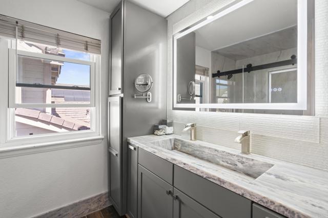 Step into this beautifully reimagined, move-in ready residence located within the coveted gated enclave of Williamsburg in San Marcos. This exquisitely upgraded 3-bedroom, 2.5-bathroom home with a flexible bonus space offers the perfect balance of elegance, comfort, and functionality. Inside, you’ll be welcomed by a light-filled interior featuring upgraded flooring, fresh paint, and a fully renovated kitchen and bathrooms—all appointed with premium finishes and thoughtful craftsmanship. Upstairs, brand-new plush carpeting adds warmth, while custom cabinetry, sleek fixtures, and refined details throughout create a polished and inviting atmosphere. Central air conditioning, paired with solar and a battery system, ensures modern efficiency and year-round comfort. The private and low maintenance backyard retreat is lush and inviting, designed for both relaxation and entertaining, with ample room to enjoy dining al fresco beneath the San Marcos sunshine. Residents of Williamsburg enjoy resort-style amenities including an expansive pool and spa, tennis and basketball courts, a welcoming clubhouse, scenic parks, and winding trails. Community events foster a close-knit neighborhood feel, while nearby Jack’s Pond offers peaceful outdoor escapes. Located within the highly regarded San Marcos School District, this home truly blends tranquility, convenience, and elevated living. Don’t miss this rare opportunity to make Williamsburg your home where every day feels like a retreat.
