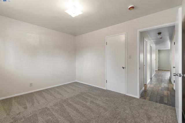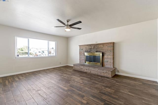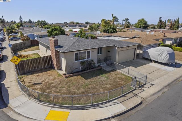 Perfect for first-time buyers or investors, this turnkey single-level ranch-style home offers 3 bedrooms and 1.5 bathrooms on a desirable corner lot in Hayward. A fenced front yard with cozy porch, two-car garage/driveway, and side access add curb appeal and convenience. The living room features a wood-burning fireplace, large picture window, ceiling fan, and durable faux wood tile flooring with easy flow into the dining area. The kitchen is equipped with a gas range/oven, freshly painted cabinets, granite countertops, and subway tile backsplash. A smart floor plan places bedrooms away from the main living areas, each with new carpet and ceiling fans. The hall bath includes granite countertops and a shower-tub combo. The attached two-car garage offers a half bath just outside the interior access door. The spacious backyard is ready for outdoor living with large side access, fruit trees, a generous patio, and storage shed. Additional highlights include a freshly painted interior, new roof, dual-pane windows, and updated blinds. Conveniently located near schools, Hwy 880/92, the San Mateo Bridge, and shopping.
