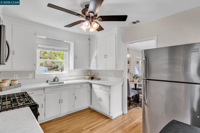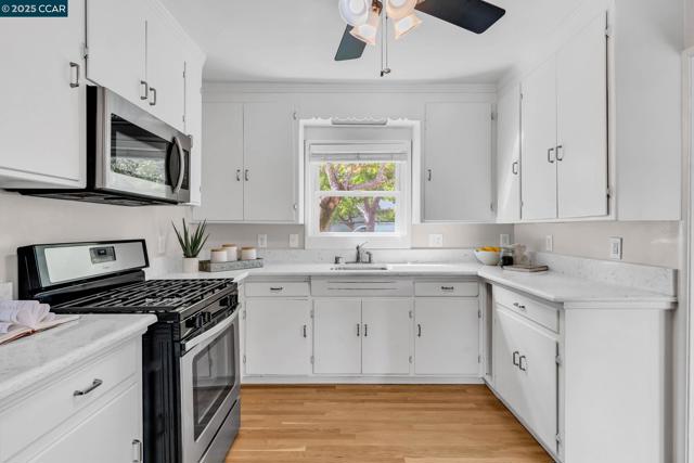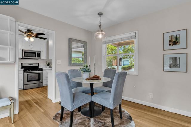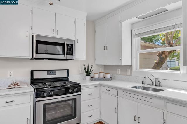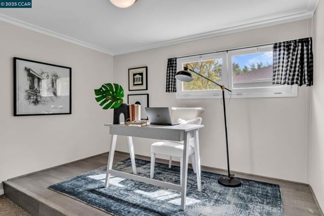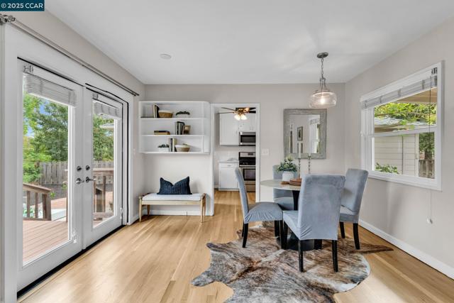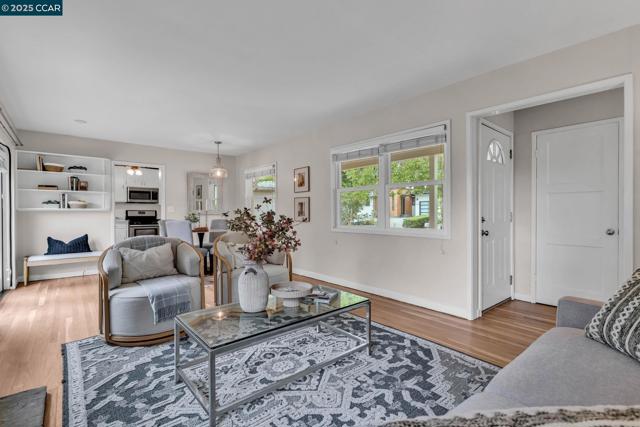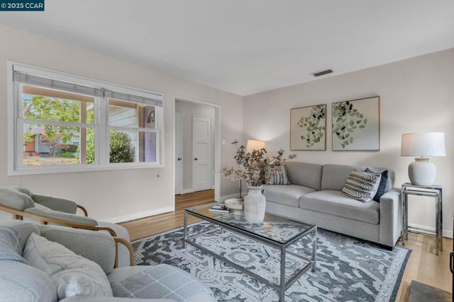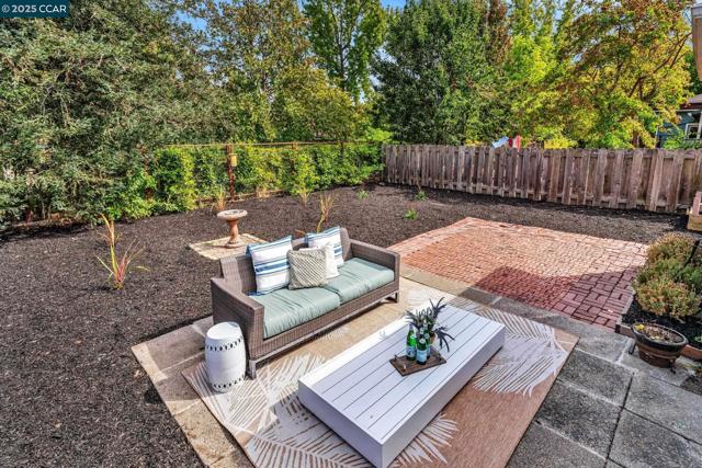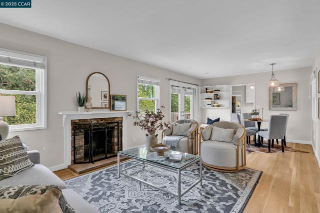 Nestled on a tree-lined and picturesque cul-de-sac, this light-filled, beautifully appointed home is located in the convenient and coveted Saranap neighborhood! Inviting brick porch, gleaming newly refinished oak hardwoods, fresh paint, dual pane windows, designer lighting, elegant stone fireplace surround, and a recently updated bathroom with stone counters, custom cabinetry, and rich tile finishes, and walls of windows looking out to the enchanting setting. The sunny East-facing kitchen features stainless steel appliances, gas range oven, impressive stone counters, a breakfast nook, views of the private garden setting. Adjacent to the kitchen is an combined office and laundry room/mud room which leads out to the one-car garage. The large level lot features filtered views of Mt Diablo, a backdrop of majestic mature trees, raised garden beds, Napa-style plantings, colorful and fragrant foliage, roses, brilliant tulip tree, brick and stone paver entertaining patio, and plenty of room for future home expansion or endless landscape ideas! Prime location, easy commuting access, top-rated schools, nearby open space, and a convenient stroll to downtown amenities, world-class shopping and restaurants.