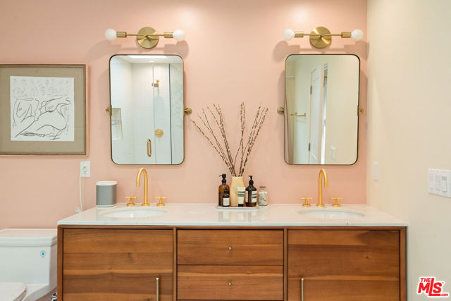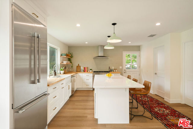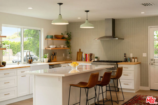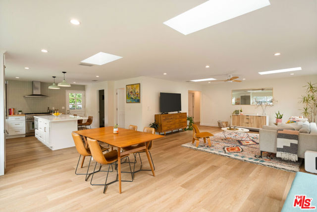 Welcome to this extraordinary modern compound, featuring a fully remodeled ultra-chic 3-bedroom, 3-bathroom home, a spacious new ADU, and a luxurious pool. Nestled on a picturesque, tree-lined street, this turnkey residence seamlessly fuses contemporary style with easy, comfortable living. Step inside to discover an airy and open-concept floor plan awash in natural light, flowing in through expansive windows and stunning skylights. The chef's kitchen is truly a culinary dream, equipped with premium Thermador stainless steel appliances, butcher block counters, a grand island with bar seating, and a walk-in pantry designed for ample storage. The spacious primary suite offers a private sanctuary complete with a walk-in closet and ensuite bathroom. Indulge in luxury with a dual sink vanity, a glass-enclosed shower, and a sumptuous soaking tub. Two additional well-appointed bedrooms share a stylish full bath. Venture outside to find an entertainer's paradise. The backyard is a welcoming oasis, showcasing pristine green turf, a Trex deck, and a sparkling new pool with spa, Baja shelf, and convenient outdoor shower. Multiple lounging and recreation areas invite endless enjoyment. Moreover, the property includes a large fully permitted ADU with its own kitchen, laundry, and spacious bathroom, ideal for hosting family and guests or generating rental income. Additional features of this gem include a charming powder room, easy access attic storage, laundry closet, dual-paned windows, solar panels and EV charger. The down-to-the-studs meticulous remodel boasts updates such as a new roof, updated electrical and plumbing, tankless water heaters, and a new central HVAC system with Nest thermostat. Conveniently located near major thoroughfares, metro station, studios, shopping centers, and local eateries, this perfect compound embodies the essence of easy, classic California living at its finest. Welcome home!