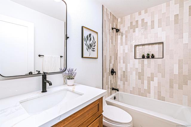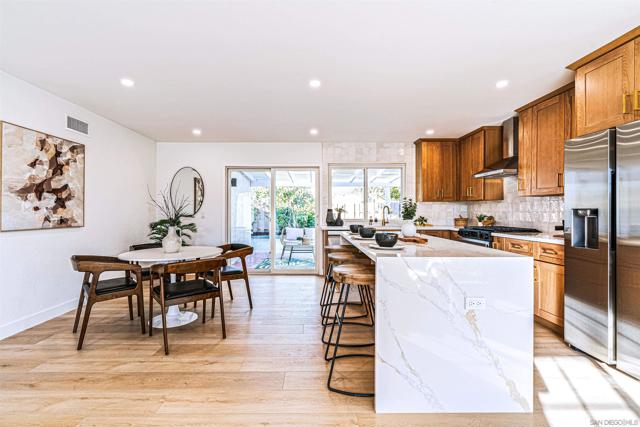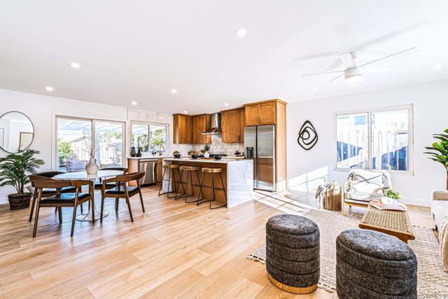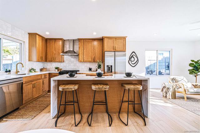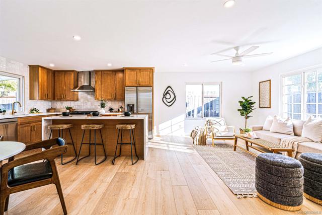 Welcome to 11279 Pegasus Avenue in Mira Mesa. This move-in-ready residence offers a bright open floor plan with fresh finishes, new flooring, and abundant natural light throughout. The modern kitchen is complete with quartz countertops, sleek cabinetry, and stainless steel appliances, flowing seamlessly into the living and dining areas for easy entertaining. The spacious primary suite includes a remodeled en-suite bath, while three additional bedrooms provide flexibility for family, guests, or a home office. Outside, the private backyard is a gardener’s dream with mature fruit trees including two varieties of avocado, apple, lemon, guava, loquat, and plum. Conveniently located near top-rated schools, shopping, dining, parks, and freeway access, this home offers the perfect blend of comfort, style, and convenience in a desirable neighborhood.