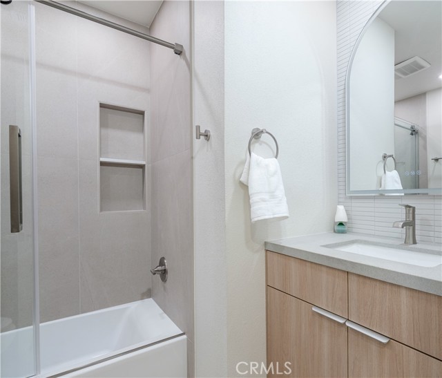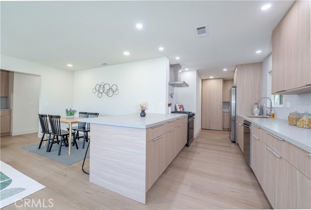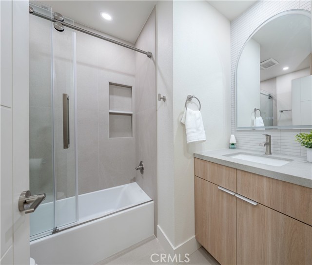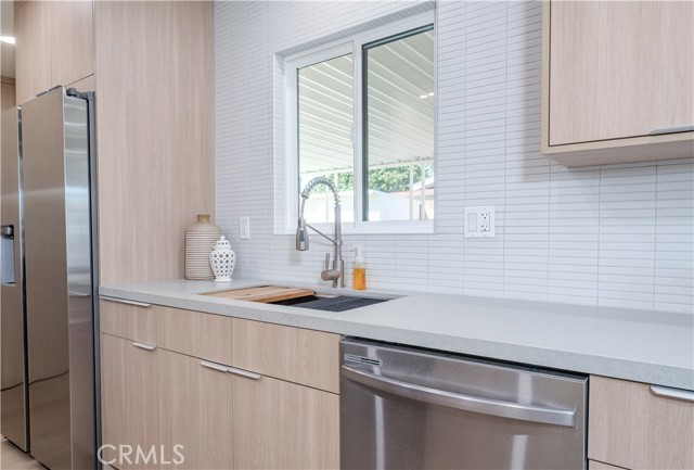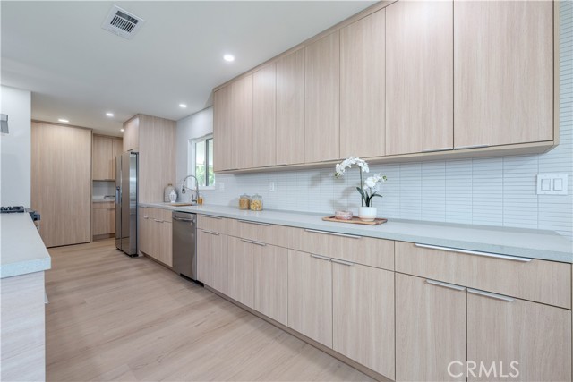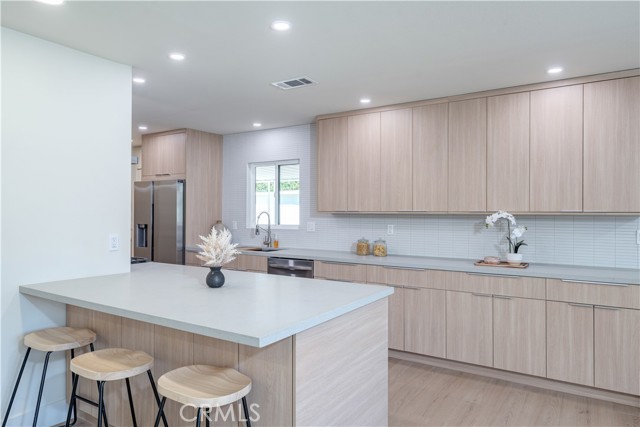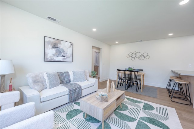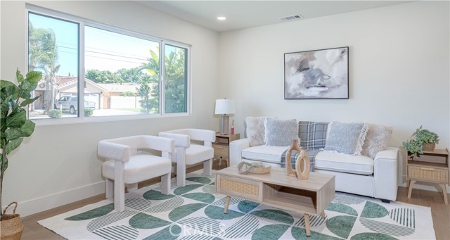 Welcome to this beautifully remodeled 3-bedroom, 2-bathroom turnkey home, where contemporary design harmoniously melds with traditional European influences. Every corner of this residence is a testament to clean lines and an emphasis on both functionality and comfort, highlighted by luxurious vinyl flooring that flows seamlessly throughout. Step into the stunning modern kitchen, a culinary haven featuring abundant counter and cupboard space adorned with elegant quartz countertops and sophisticated cabinetry. The inviting serve-over bar provides a perfect spot for casual dining, making it an ideal space for entertaining. The kitchen comes fully equipped with brand-new stainless steel appliances, ensuring a delightful cooking experience. Retreat to the primary suite, which boasts its own en suite bathroom. This serene oasis includes a floating vanity and a lavish walk-in shower, designed to provide a spa-like experience. A convenient sliding door offers direct access from the bedroom to the backyard, allowing for effortless outdoor enjoyment. The secondary bathroom is equally impressive, showcasing modern fixtures in a stylish full tub and shower combination. The home features two additional secondary bedrooms, providing ample space for family or guests, as well as versatile living options. Additional upgrades include new electrical and plumbing systems throughout, ensuring peace of mind for years to come. Nestled on a generous lot of over 7,800 square feet, the property is framed by newly laid sod, complete with a state-of-the-art sprinkler system equipped with timers. The expansive backyard is a paradise for entertaining, showcasing a blend of spacious hardscaping and lush soft landscaping, complemented by mature foliage and a thriving vegetable garden that invites you to embrace the joys of outdoor living. Conveniently located near esteemed schools, markets, and a vibrant array of shopping and dining options, this property offers easy access to Disneyland and major freeways (22, 5, 57, and 10), and the lively Little Saigon area, making it a prime spot for both work and play.