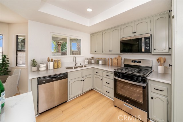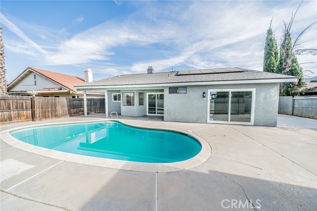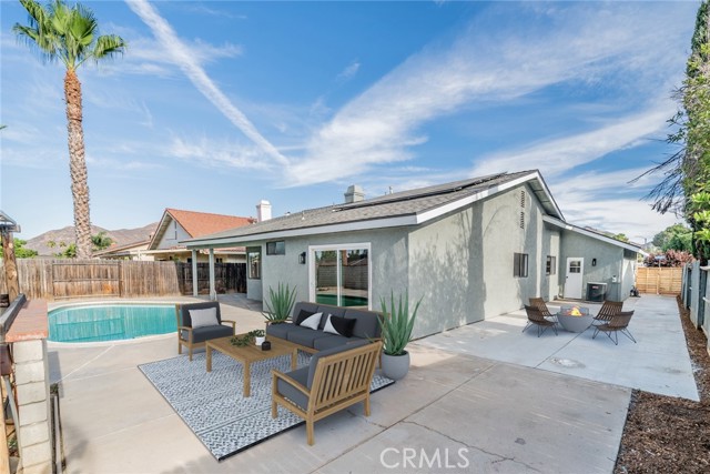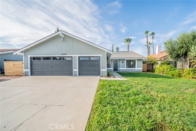 Welcome to Your Dream One-Story Pool Home in Moreno Valley! Discover the perfect blend of comfort, style, and functionality in this beautifully upgraded single-story residence, ideally situated on a spacious 7,405 sq. ft. lot. Offering 4 spacious bedrooms and 2 updated bathrooms, this home is designed for everyday living and memorable gatherings. Step into the inviting family room, where a cozy fireplace and abundant natural light create a warm and welcoming atmosphere. The home features new laminate flooring, fresh interior and exterior paint, new ceiling fans, and recessed lighting, all contributing to a sleek and contemporary look. Both bathrooms have been stylishly updated with new vanities and modern showers for a spa-like feel. The kitchen is a true highlight, showcasing freshly painted cabinets, new quartz countertops, a custom tile backsplash, and all-new stainless-steel appliances, sink, and fixtures—perfect for both cooking and entertaining. Outside, enjoy fresh landscaping in the front and backyard, complemented by a sparkling swimming pool and covered patio, ideal for summer barbecues and entertaining family or guests. Additional upgrades include new side gates for added privacy and security. Parking and storage are a breeze with the attached 3-car garage. The home is conveniently located near schools, shopping, restaurants, and freeway access, making daily life easy and enjoyable. This move-in ready property has it all—don’t miss your chance to make 24345 Moonraker your forever home. Schedule your showing today!
