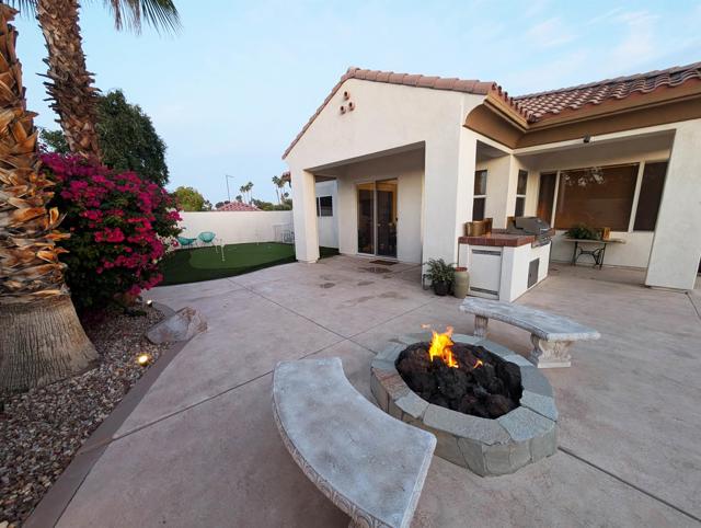 Owned Land in Mission Hills—Sports/Tennis/Pickleball/Social Membership Included Welcome to 102 Mission Lake Way, a rare single-family retreat on owned land (no land lease) inside Mission Hills Country Club. Set on a double-sized corner lot originally planned for two homes, this property offers exceptional privacy with no direct neighbors and lush, resort-style outdoor living—think mature palms, a built-in grill, private putting green, and a natural-gas fire pit that’s perfect for sunset gatherings. Inside, airy volume ceilings, fresh designer finishes, and a reimagined cook’s kitchen create an effortless flow for everyday living and entertaining. The spa-inspired primary bath is a serene escape, while a separate ensuite bedroom with its own entrance is ideal for guests, extended family, or a quiet work-from-home suite. Ownership includes 24-hour guard-gated security and HOA-covered landscaping, cable/internet, and access to the Mission Hills Sports Center with Sports/Tennis/Pickleball/Social/Fitness privileges. Prefer the fairways? Explore optional golf or enhanced social memberships at the main club with three celebrated courses. A two-car garage with golf-cart space and ample guest parking make coming and going a breeze. Centrally located in Rancho Mirage, minutes to shopping, dining, and premier resorts, 102 Mission Lake Way pairs the coveted Mission Hills lifestyle with the rare advantage of fee land—no land lease—inside the gates.