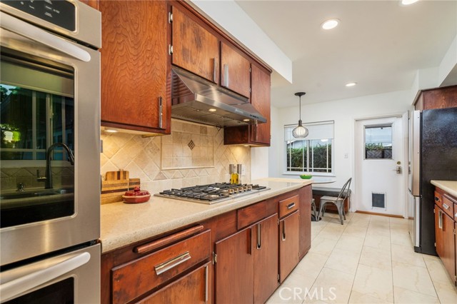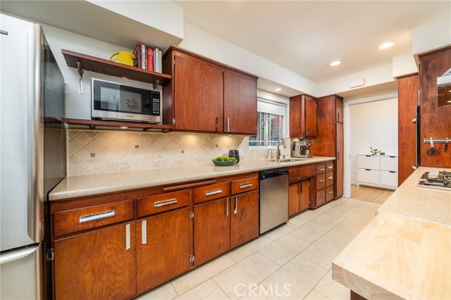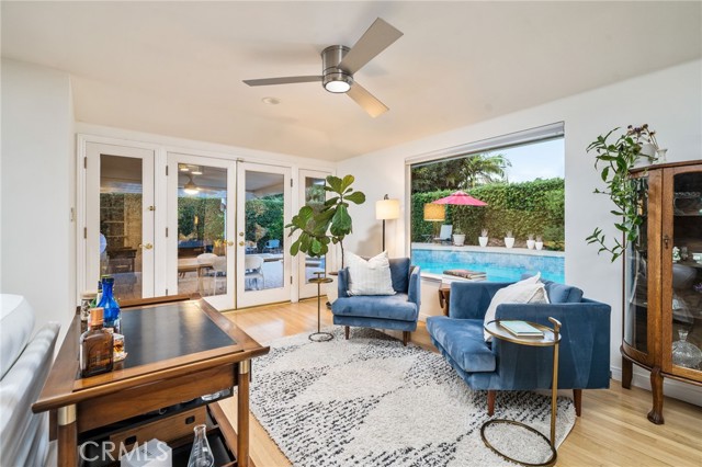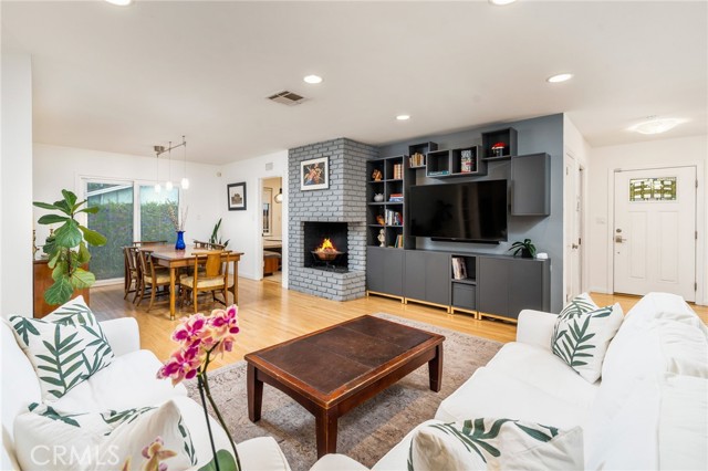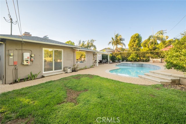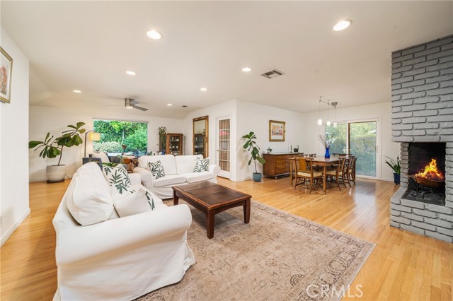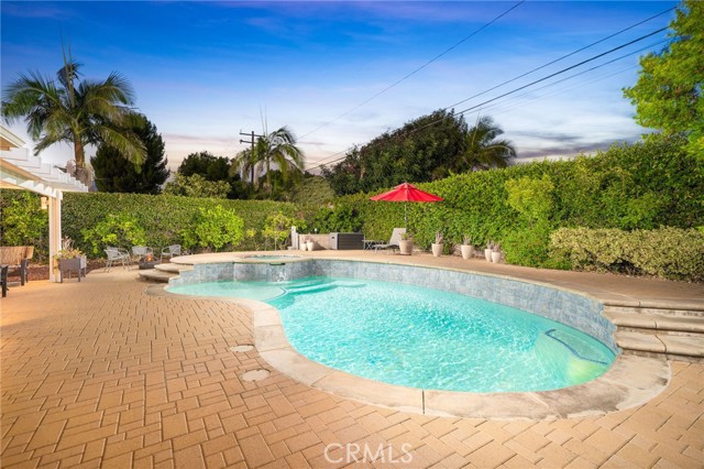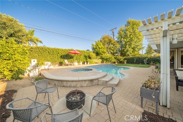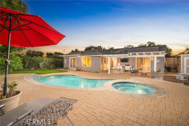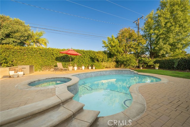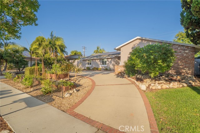 This Claremont single-story residence welcomes you with classic curb appeal. A circular driveway provides a practical and inviting approach, while mature landscaping frames the exterior. Inside, hardwood floors extend through the main living areas, enhanced by natural light from large dual pane windows. The expansive living room offers an open feel with built-in features and a brick fireplace with a modern fire bowl detail. The layout flows easily into the spacious dining room, creating a comfortable setting for gatherings or everyday living. The kitchen blends style and function with newer tile flooring, stainless steel appliances, and a built-in gas range. Ample counter space is enhanced by a butcher block for added versatility. A designer tile backsplash adds visual appeal, while extensive cabinetry provides generous storage. Completing the space is a bright breakfast nook, ideal for morning coffee or casual meals. The home offers four well-proportioned bedrooms, each filled with natural light and updated for comfort. Two remodeled bathrooms showcase modern finishes, and the primary suite provides direct access to the backyard, creating a private retreat and easy access to the patio, pool and spa. The backyard extends the home’s appeal with multiple areas designed for both entertaining and relaxation. A spacious aluminum covered patio anchors the outdoor space, while the newer pool and spa provide year-round enjoyment. A breezeway adds architectural interest, and the dedicated grassy area offers flexibility for play, gardening, or gatherings. The grounds are enhanced by mature citrus and other fruit trees, setting a beautiful and useful atmosphere. Blending comfort and style, the outdoor setting is equally suited for large events or quiet evenings.