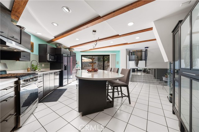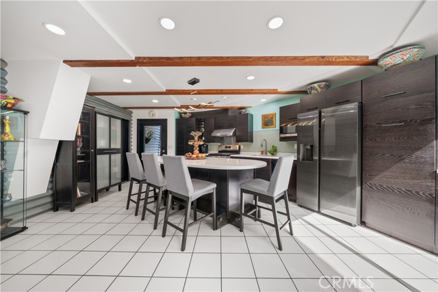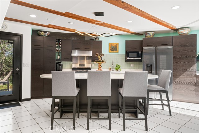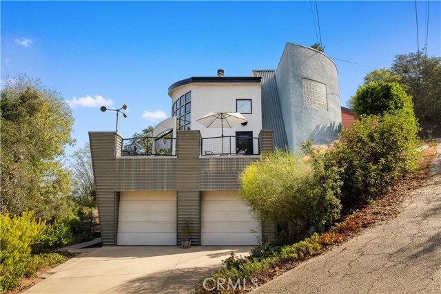 View! Very well built and maintained! This 1991 rebuilt, unique contemporary property features 2 bedrooms, plus a den (which could be the 3rd bedroom), 3 full bathrooms, and a 2-car attached garage. High ceilings greet you at the entry. The upgraded kitchen boasts beamed ceilings, light Corian countertops, a center island, a full mosaic backsplash, and top-tier appliances. The open and bright living room includes a gas fireplace, while the family room features wood flooring, a media center, a wood-beamed ceiling, and its own fireplace. Both the living room and family room provide access to the large balcony, which offers beautiful hill views. The primary bedroom has a vaulted ceiling, his and hers closets, and a primary bathroom with a designer tile floor, a glass block window, and a large walk-in shower. The second bedroom also has a vaulted ceiling. The bonus den could easily be converted into the 3rd bedroom. Additional features include custom lighting, custom window roller shades, custom two-tone paint, double-pane windows, metal wall panels, and a skylight. The private backyard is peaceful and tranquil, perfect for family gatherings and relaxation. Elegant spiral stairs lead to the large balcony, where you can enjoy the rolling hills view. This home offers easy access to the center of Chino Hills and nearby cities in Orange County. It is also located within the boundaries of excellent Chino Hills schools, including the award-winning Ayala High School, Canyon Hills Junior High, and Litel Elementary.