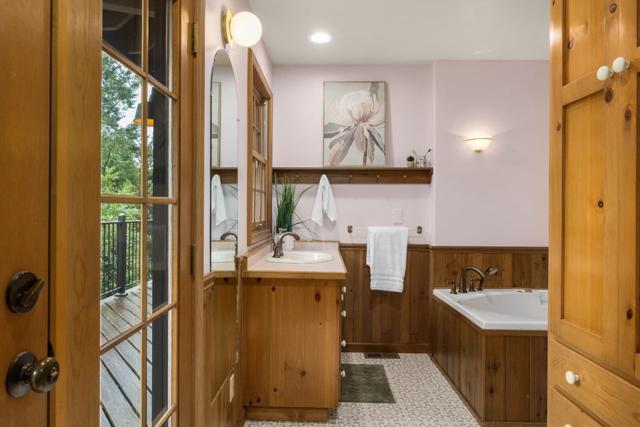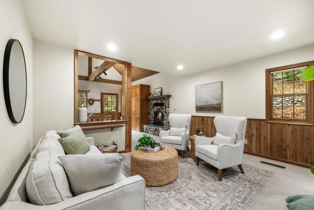 Welcome to a corner of paradise found that feels like the middle of nowhere & the center of everything all at once. Timeless 2br, 2ba, 1520 sf ft mountain home in a remarkably serene setting. Equal parts magical park & relaxed retreat. 2 parcels for a combined ~1 acre setting w/an array of plants, flowers, fruit trees & redwoods. Lovingly nestled on a warm, sunny landscape in the peaceful Mount Hermon community. This is the vacation home/summer camp that will speak to your inner child: sunny afternoons, starry nights, carefree days by the water & lots indoor/outdoor play spaces. Close to the community pool, river beach w/waterfalls & The Fountain where you'll find delicious nachos & ice cream. Don't miss the ropes course & climbing wall. Thoughtful & well appointed details: custom stone fireplace, kitchen island, gas cooktop, wooden cabinets & finished basement offering a wealth of options. Soaring ceilings w/wooden accents, skylights & walls of windows gracing each space w/greenery. Patios off each bedroom & an expansive deck create connection between indoor & outdoor worlds. 2 carport spaces + additional parking. Henry Cowell hiking & the conveniences of Felton & Scotts Valley are minutes away. This is a chance to feel off the grid while staying connected to nature & community.
