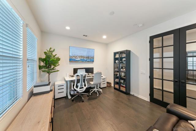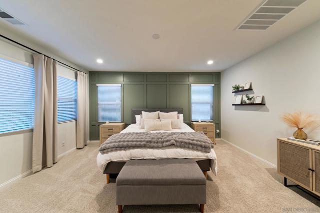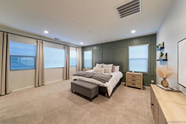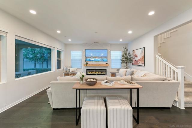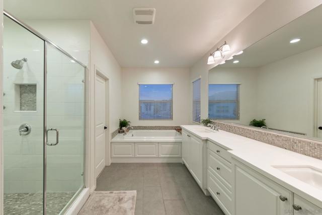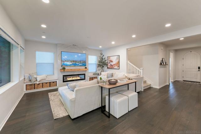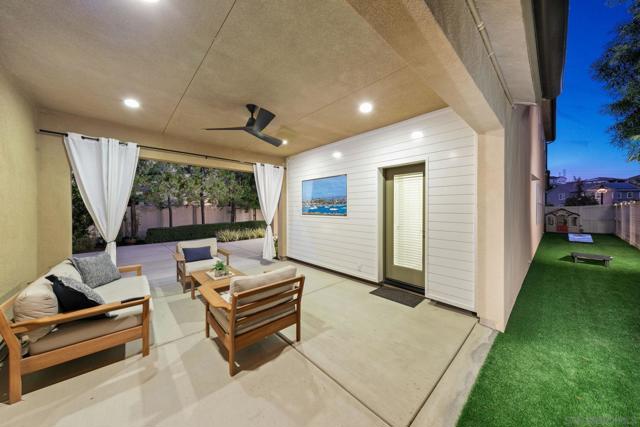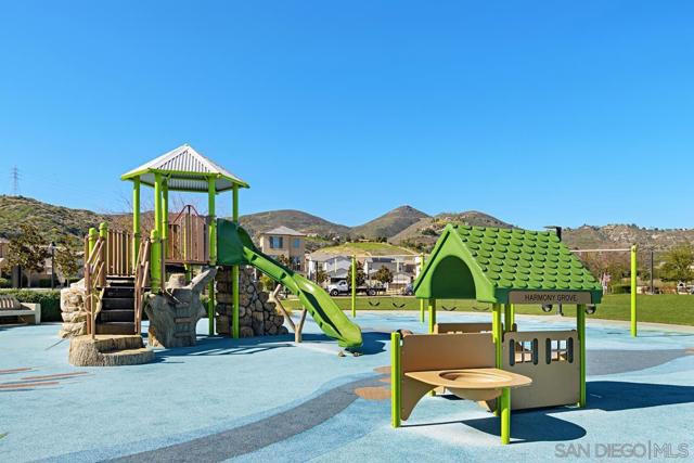 Your new home in the sought after community of Harmony Grove Village awaits you! This lovely home features many designer touches, OWNED solar, an ample 3027 sq. ft. with 4 bedrooms, 4 1/2 baths, bonus room (could easily be converted to a 5th bedroom) a separate office with French doors for privacy and a 3 car garage. The spacious great room features a cozy electric fireplace, dry bar with beverage fridge and spacious kitchen with a huge island! The kitchen flows seamlessly into the CA Room and patio with several areas for entertaining guests or just staying home and relaxing. This floorplan is perfect for hosting both large gatherings or intimate dinner parties. Harmony Grove Village has it all! Residents enjoy the resort like pool complex, miles of walking/biking/horse trails, 4th of July Park & numerous pocket parks.