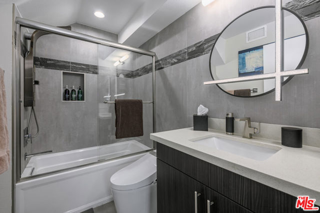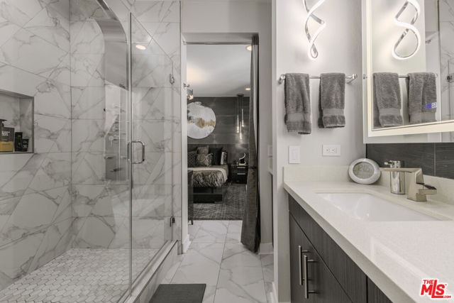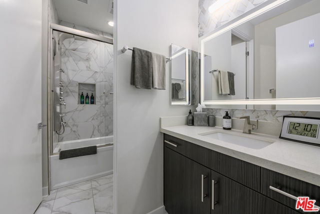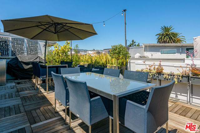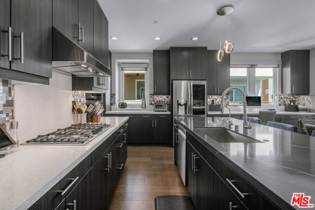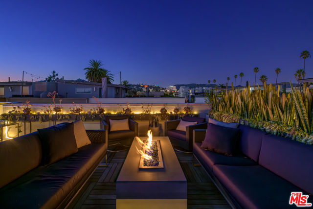 Welcome to your private Hollywood sanctuary, a rare 4-bedroom designer showpiece tucked inside the exclusive gates of Sol Hollywood. Just two blocks from West Hollywood and steps from the Sycamore District's trendiest spots, this home is more than turnkey, it's cinematic. Renovated top-to-bottom from 2021 to 2022 with no expense spared, it offers a seamless blend of elevated design, smart home innovation, and effortless indoor-outdoor living. Wake up to sunlight filtering through Lutron motorized shades, sip coffee in your metal mosaic-accented kitchen with custom cabinetry and premium appliances, then spend golden hour on your rooftop terrace beneath bistro lights, watching the Hollywood Sign catch the sunset glow. Entertain under the stars with your gas grill and fire pit, surrounded by lush planters and panoramic views of the Hills, the skyline, and even fireworks from the Bowl. Inside, every detail evokes boutique hotel luxury, from marble, mother-of-pearl, and mosaic finishes to spa-inspired baths with rainfall showers and genuine stainless steel fixtures. With 2,378 square feet of living space, nearly 900 square feet of outdoor entertaining areas, an upgraded two-car garage, whole-house water filtration, and full Apple HomeKit + Alexa integration, this home is as functional as it is fabulous. Tucked away from the street with no shared walls and direct access 2-car garage parking, it offers rare privacy and serenity in the heart of LA's most iconic neighborhood. This is not just a home; it's a statement, a retreat, a lifestyle.