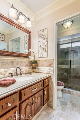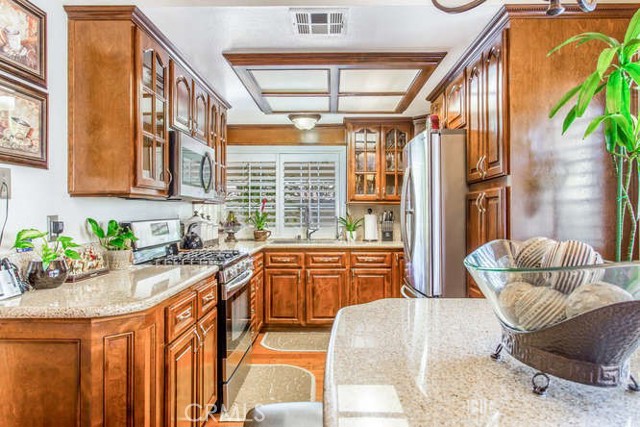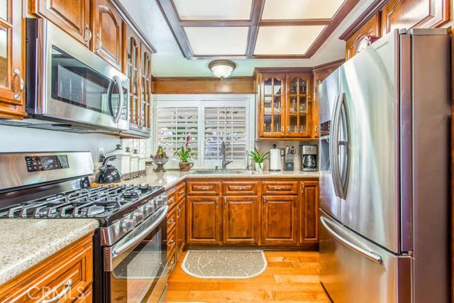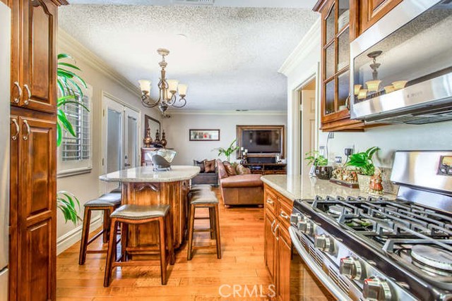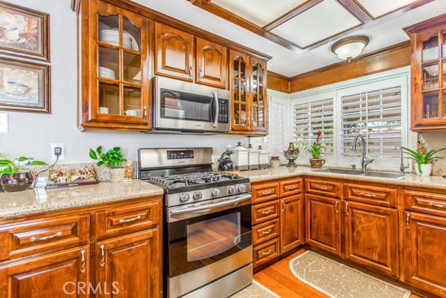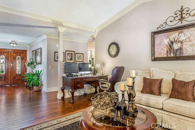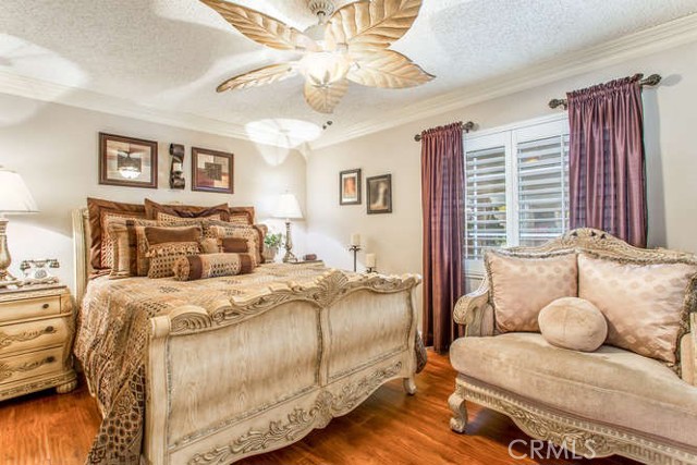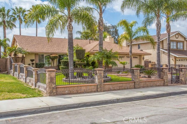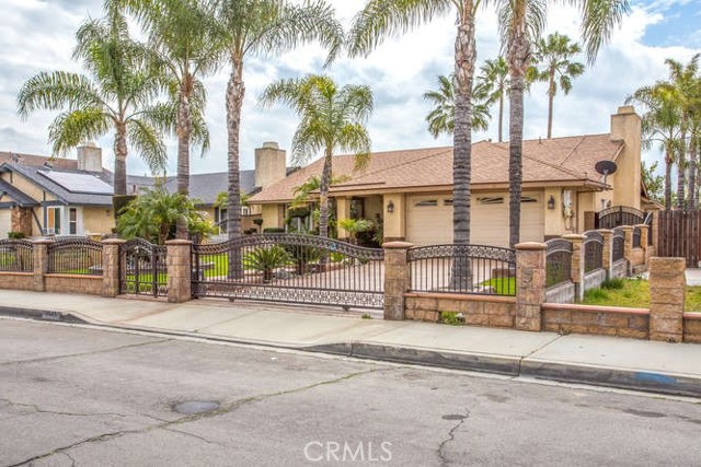 Oh my word!!! Have you been looking for a stunning executive style, single story home, close to everything to call your own??? Then PLEASE come and see this beauty. Located within a stone's throw from the High, Middle and Elementary schools, and also just a few short minutes from Arrowhead Regional Medical Center, churches, shopping and dining, this is the definition of "centrally located". From the minute you pull up to this beauty, the curb appeal is immediately impressive. The front gate is remote controlled, with elegant combination of ironwork and stone fence. Inside the fence, the well manicured front yard invites you to come on in, up the stamped walkway to the impressive double doors. Step inside to this welcoming home which has been upgraded in every imaginable way. From genuine hardwood floors throughout, to elegant crown molding in every room, as well as plantation shutters throughout. The beautiful kitchen is sure to inspire even the shyest of cooks. In the winter, relax by the impressive fireplace with a beautiful granite and wood surround.... Both bathrooms have been beautifully updated and features floor to ceiling tile and beautiful granite counters. Through the side french doors off the kitchen, you're led to an entertainer's paradise out back. The stamped concrete and tiled back yard has a patio cover that runs the entire width of the house, and features an outdoor kitchen with custom barbeque grill, sink, tortilla plate and much more. No expense has been spared on this beauty, so come and make it your own today, you'll be so glad you did!!!