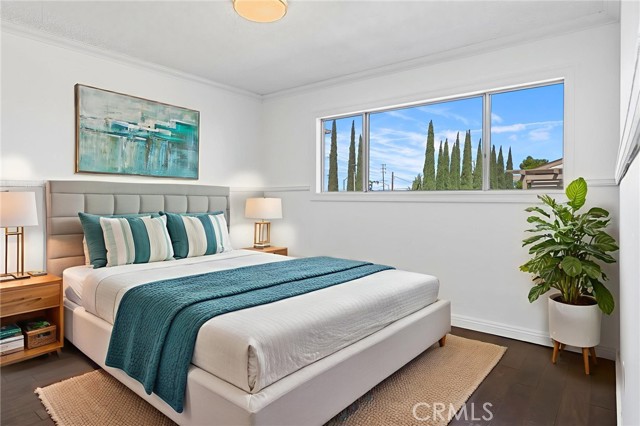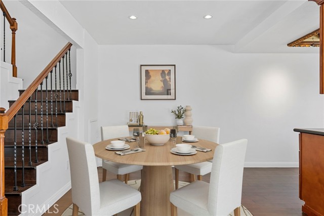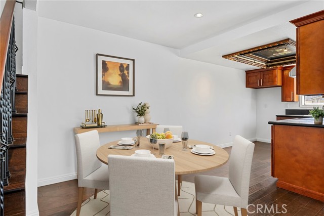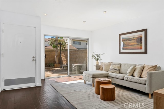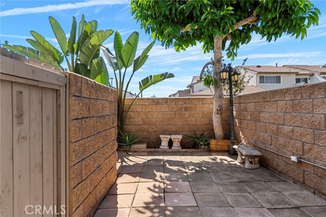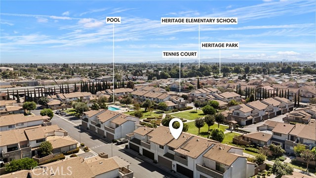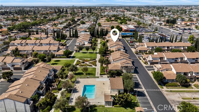 Welcome to Cambridge Green, a gated community so desirable that homes here rarely come up for sale—the last one sold in 2024! Perfect for 1st time home-buyers! This 3 bedroom, 2.5 bathroom unit also features a permitted 103 sq ft den area in the upstairs primary suite, making it an even more unique opportunity. Set on a large, lush lawn between the pool and tennis courts, this home offers one of the best locations in the complex. Enter through the front door into a bright kitchen and dining area that flows seamlessly to a spacious private patio—perfect for outdoor dining or relaxation. The adjoining living room creates an inviting gathering space. The main living areas have wood flooring, recessed lighting, and fresh finishes. Note: this home has scraped ceilings (downstairs) with recessed lighting, adding potential for future customization. Upstairs, the vaulted ceiling, oversized primary suite boasts a walk-in closet, vanity area, full bathroom, and its own private balcony. The permitted den addition offers flexibility as a home office, nursery, cozy retreat or additional 4th bedroom! Two additional bedrooms and another full bath complete the upper level. Other updates include a newer water heater. The 2-car garage provides ample storage, 220 Electric Vehicle charge port and laundry hookups. Cambridge Green residents enjoy resort-style amenities including a pool, spa, clubhouse, tennis court, and abundant guest parking. Ideally located near the 405 & 22 Freeway, Mile Square Park, Little Saigon, Phuoc Loc Tho, Saint Barbara Church, Bát Nhã Temple, shopping, and dining—with Disneyland and the beach just a short drive away. Don’t miss this rare chance to own in Cambridge Green!