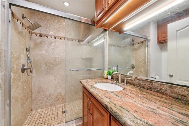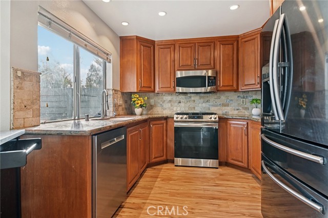 Welcome to this stunningly upgraded two-story townhouse, ideally located in the highly sought-after Woodbridge Village community! Spanning 1,573 sq. ft., this home features 3 bedrooms and 2.5 bathrooms designed for comfort and convenience. With no one above or below and a serene greenbelt view, it provides both privacy and tranquility. Step inside to a bright, open floor plan with soaring vaulted ceilings, hardwood flooring, and expansive windows throughout the home, all enhanced with planter shutters, adding charm and greenery to every room. The gourmet kitchen is a chef’s delight, featuring rich wood cabinetry, granite countertops, stainless steel appliances, a 4-burner stove, tile backsplash, recessed lighting, and a charming garden window. The kitchen flows seamlessly into the dining and living areas, which open through sliding glass doors to a private backyard retreat—perfect for entertaining and enjoying the Southern California lifestyle. Downstairs includes a convenient powder room for guests. Upstairs, the spacious primary suite boasts a remodeled bath with granite vanity and spa-inspired soaking jetted tub, while two additional bedrooms share a beautifully updated bathroom with walk-in shower, granite vanity, and tile flooring. Additional highlights include direct access to a two-car garage and in-home laundry. Woodbridge Village residents enjoy resort-style amenities: 22 pools, 24 tennis courts, pickleball, volleyball, spas, beach lagoons, lakes, playgrounds, walking trails, and more—including opportunities for biking, fishing, boating, and watersports. The home is within walking distance to award-winning schools and just minutes from shopping, dining, UCI, and John Wayne Airport. Don’t miss this rare chance to live in one of Irvine’s most desirable communities!