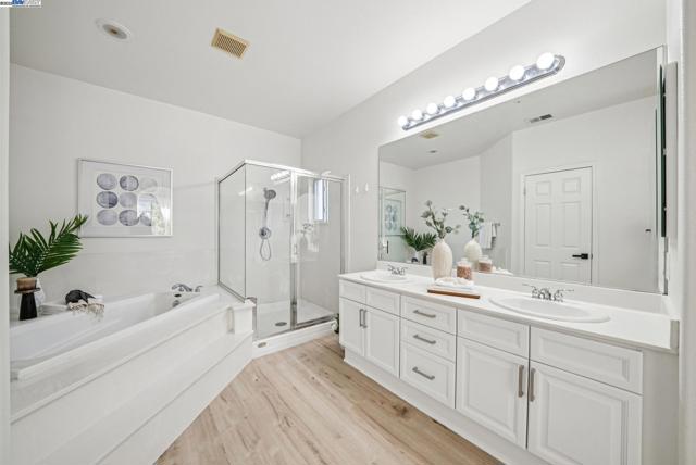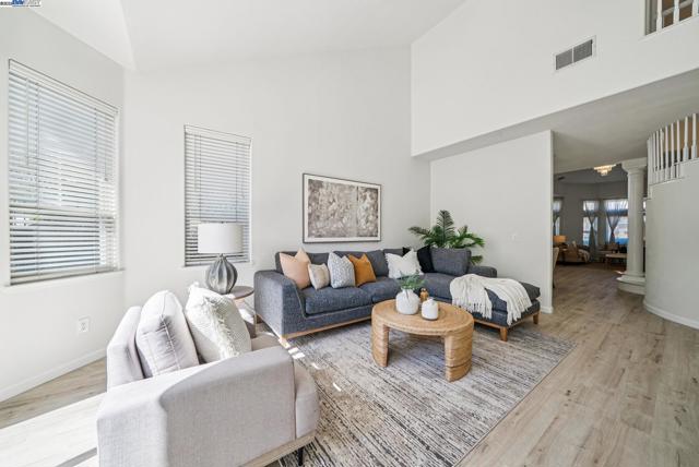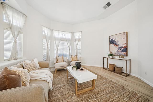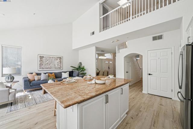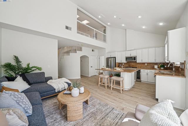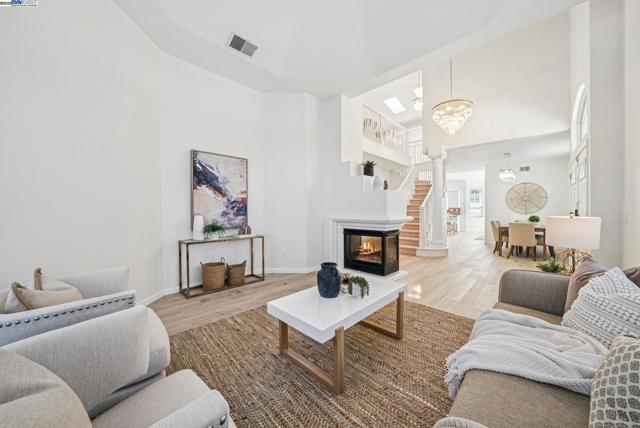 THIS IS IT! Gorgeous 3 BR + Loft, 2.5 BTH North facing home in prestigious Moller Ranch on one of the neighborhood's largest lots. Located on the most desirable cul-de-sac in the community, this hillside retreat is surrounded by hundreds of acres of wooded open space and hiking trails. This gorgeous home features vaulted ceilings, hardwood style LVP flooring, and custom fixtures and finishes. The elegant living room has a cozy fireplace, with an adjacent dining room. The upgraded gourmet kitchen features granite counters, updated cabinets, new stainless appliances, and large center island. The family room opens to the inviting family room with views of the yard. The primary bedroom is conveniently located off the kitchen, and features a luxurious bath with dual vanity, soaking tub, separate shower, and large walk-in closet. Upstairs you will find 2 large secondary bedrooms, a functional hall bath with dual sinks, and a spacious loft perfect for an office or homework station. Step out onto the private backyard and soak in sweeping city light views, providing a peaceful setting to relax. The location is close to award winning schools, shopping and parks, and enjoys easy commute access to BART, I-580, and I-680. Welcome home!