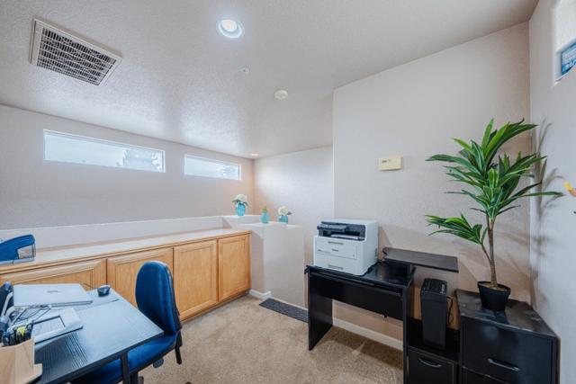 This beautiful 2384 sq ft home features four bedrooms and 2.5 baths, including a spacious ground-floor primary bedroom suite with a walk-in closet, sitting area, and a large bathroom. The kitchen is a chef's delight, equipped with granite countertops, a double oven, a gas range with a custom updraft exhaust, and a touchless faucet. Enjoy the flexibility of multiple dining options, including a breakfast bar, breakfast nook, and a formal dining area in the living room. The home boasts a separate family room with high ceilings and a fireplace, providing a cozy ambiance. The flooring combines carpet and tile, offering both comfort and durability. Other amenities include a utility room with a washer and dryer, a three-car garage, dual-pane windows, and more. The entertainers' back patio is equipped with everything you need for an enjoyable family gathering, allowing you to sip and savor while relaxing under the lights. This home seamlessly combines functionality and style, making it perfect for any family.