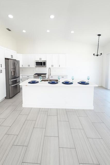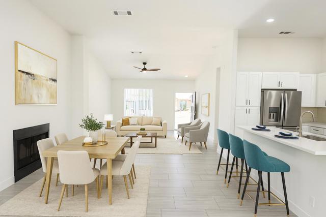 A fresh beginning awaits in Las Haciendas. More than remodeled, this single story 4-bedroom, 2-bath home has been reimagined with intention. At its heart is a brand new kitchen with quartz counters, stainless steel appliances, and a generous island that invites gathering. The living spaces flow easily, warmed by natural light and anchored by a fireplace that feels like the true center of home. The primary suite becomes a place of rest, where soft light and quiet space invite you to pause and recharge, complete with a walk in closet and a dual vanity bath for everyday comfort. Three additional bedrooms bring flexibility for loved ones, guests, or creative pursuits. Step outside to mountain views rising beyond a private yard framed by new white vinyl fencing and water wise desert landscaping. A home ready for its next story bring your clients and let this house do the talking.