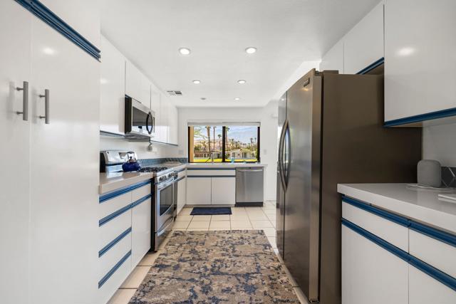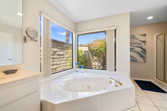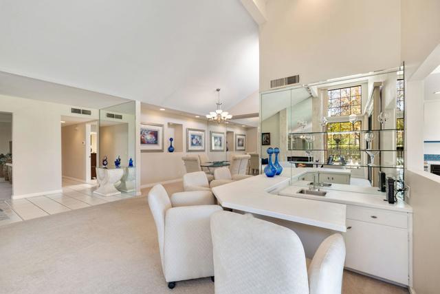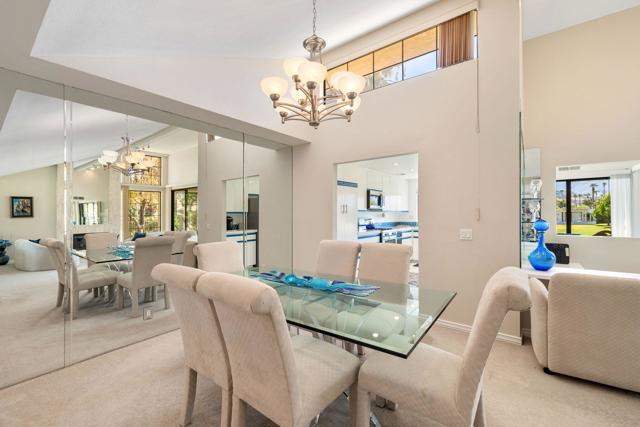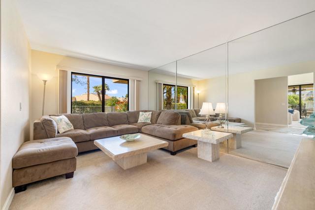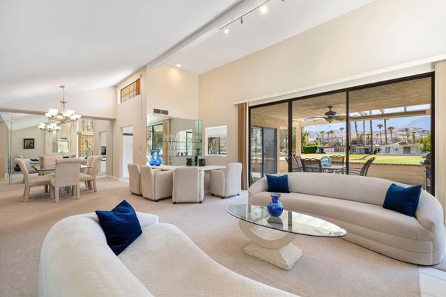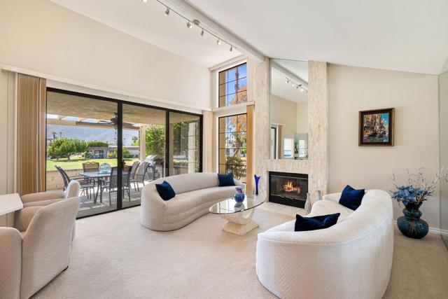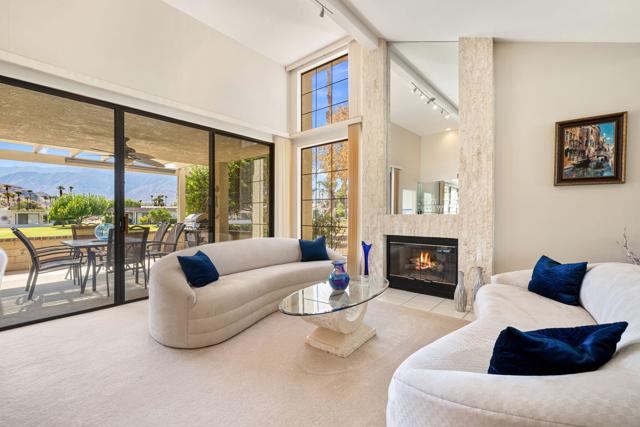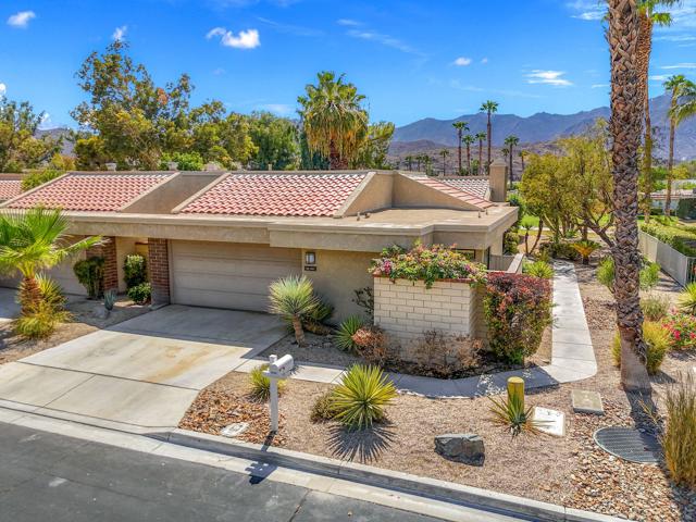 Turnkey furnished, Immaculate 3 Bedroom, 2 Bath home overlooking Women's Tee 3 with panoramic Western Mountain Views as your backdrop. Foyer entry to soaring ceilings in living room with fireplace and sunken wet bar with wall of glass to soak in the views. Formal Dining area , Spacious kitchen with stainless appliances, kitchen nook and access to patio. 3 spacious Bedrooms, one currently used as a TV room/Den. Primary suite with walk in closet, soaking tub and separate shower - opens to private enclosed garden area. Interior laundry room, double car attached garage. Guest parking immediately to the right of the unit and adjacent to one of the many sparkling pools and spas you have access to. Clubhouse, tennis, activities, Whether you want to make this one your home away from home as the current owners have or a full time residence, you have found the perfect property!