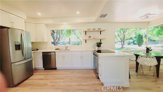 Extensively remodeled and move-in ready, this beautifully updated home is located in one of the most sought-after areas of Oroville’s East Foothills. Set on a level, usable .34-acre lot, it offers peaceful privacy while remaining just minutes to shopping, schools, Hwy 70 access, and multiple nearby boat launches for Lake Oroville adventures! Boaters will love the location: only approx. 2 miles to Loafer Creek Boat Ramp, 3.5 miles to Bidwell Canyon Marina with rentals and launch facilities, and about 4 miles to Spillway Boat Ramp—ideal for year-round recreation. And yes—the lake is full and ready for summer fun! Step inside and enjoy fresh paint, waterproof plank flooring throughout, recessed lighting, and all-new fixtures. The stunning kitchen features Carrera quartz counters, white oak open shelving, stainless steel appliances, soft-close hardware, and a large pantry with extra cabinetry and butcher block counter space. The breakfast nook is light and bright with large corner picture windows and a designer fandelier. The living/dining room is rich with character, showcasing open-beam redwood ceilings, shiplap, a redwood beam mantle, earth-tone slate hearth, and built-in shelving. The hallway bath includes a new vanity, eco flush toilet, black slate tile flooring, and porcelain tub/shower surround. The spacious primary suite boasts double French doors, large picture windows, a makeup counter, new vanity, slate flooring, eco flush toilet, and a porcelain walk-in shower with floor-to-ceiling tile. All interior doors and casing are new solid-core upgrades, with maple cabinetry and dovetail drawers throughout. Enjoy outdoor living with a 10x50 cement/slate patio, 8x14 gazebo with its own cement pad, and a fenced, level backyard featuring mature landscaping and fruit trees: cherry plum in front; in back—pink lady apple, Rainier cherry, orange, two peach trees, fig, and three large banana trees, plus a grapevine. A 15x6 concrete pad with water awaits your garden shed or hobby space. Other highlights: single-car garage with automatic opener, attached shop, new 40-gallon water heater, red cedar batten board siding with brick accents, concrete and brick planters, side yard access from east and south sides, circle driveway, and paved parking for up to 12 vehicles.