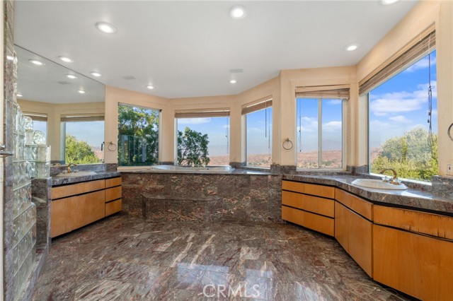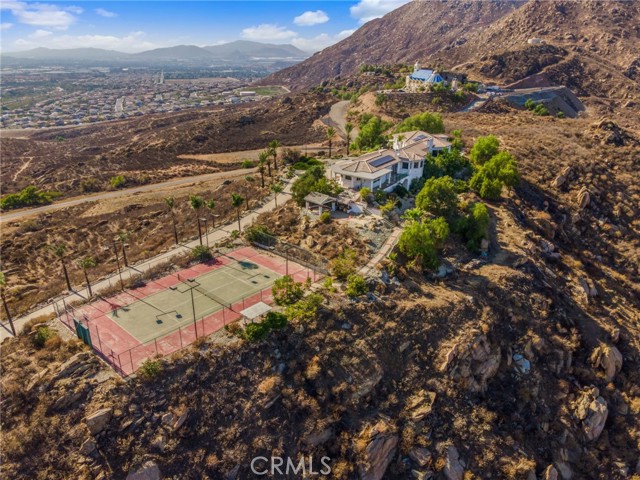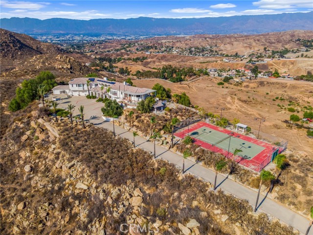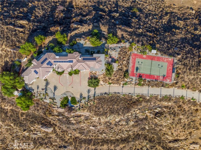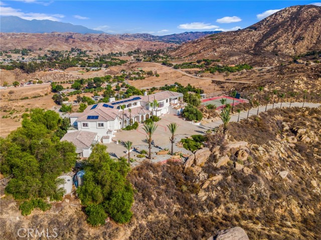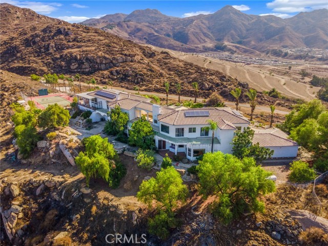 Drive up to this custom built, private gated estate with breath taking views! Your very own sanctuary surrounded by natural beauty. This expansive two parcel 9.5-acre lot features a long list of amenities which include a tennis court, solar panels, built in barbecue grill, two home offices, recreation room, library and guest quarters. Enjoy the picturesque canyon views from multiple viewing decks and patios all around the property. The open kitchen layout is great for entertaining, butler's pantry, wine cellar, complete with a breakfast nook and cozy fireplace. Did I mention views?! Wake-up to panoramic views from your ensuite, complete with a sunk in jet tub, private workspace, and walk in book closet. This home features an abundance of natural light and elegant tile floors that flow throughout the house. One downstairs bedroom. Huge upstairs loft with a pool table and kitchenette/bar, perfect for entertaining guests. And if they decide to stay, there is a spacious in-law guest suite, complete with its own private entrance and own garage. This Oasis awaits! Don’t sleep on it!