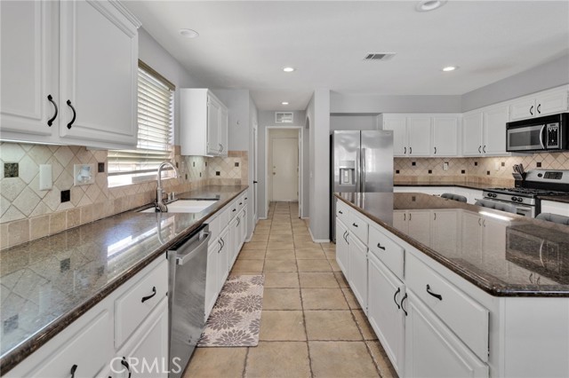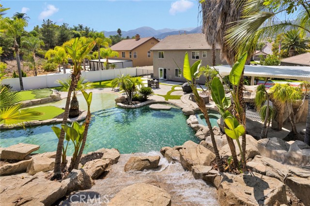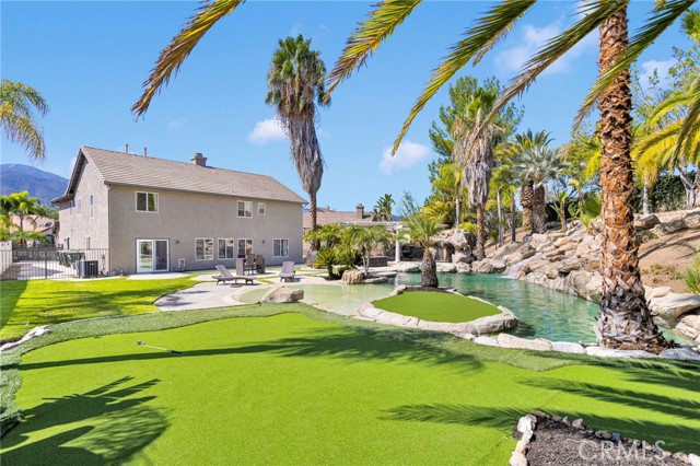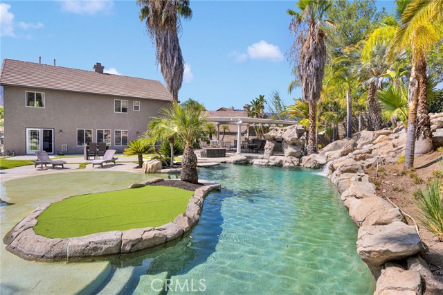 Welcome to 479 Adirondack located in South Corona in the highly sought after Mountain Gate community. No HOA, low tax rate approximately 1.187%. With excellent school ratings, walking distance via back gate to Citrus Middle school, this incredible 2 story home offers a sprawling 3,530SqFt of living space on a .44 acre of land, 5 bedrooms 3 full bathrooms with a breath taking entertainers dream backyard. Sitting on just under 20,000sqft Lot, the front exterior is well maintained and tastefully designed with plenty of concrete, RV parking, gorgeous curb appeal adorned with birds of paradise and palm trees throughout. The backyard is sure to set a standard offering pebble stone pool, shallow area for kids and adult relaxation, multiple waterfalls, grotto, custom rock design, spa, putting green, built in bbq, detached patio, fire pit and more. Upon entry through the doubled doors, you are greeted with a vaulted ceiling with chandelier, formal dining room, living room and enter into the family room, spacious kitchen which offers plenty of granite counter top space, cabinets and wine rack. The main level offers a full bedroom, full bathroom a must have with multi generational living. 2nd level offers spacious master suite, his and her sink, walk in shower, bathtub and walk in closet. 3 full size bedrooms, upstairs office area with built in cabinets including a loft outside the guest bedrooms. This magnificent property checks off all the boxes, welcome home.