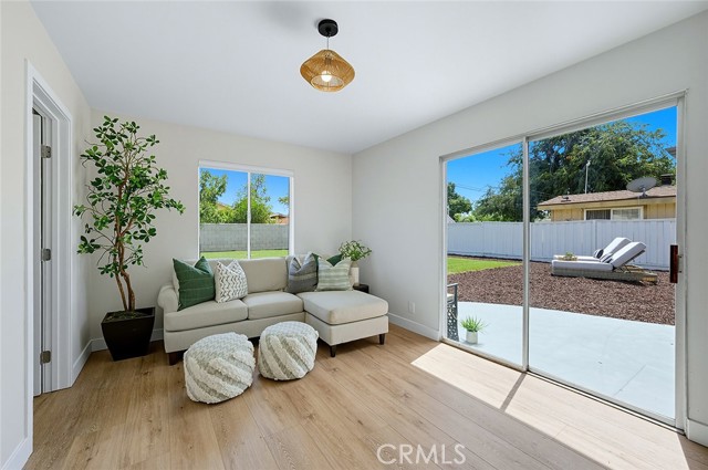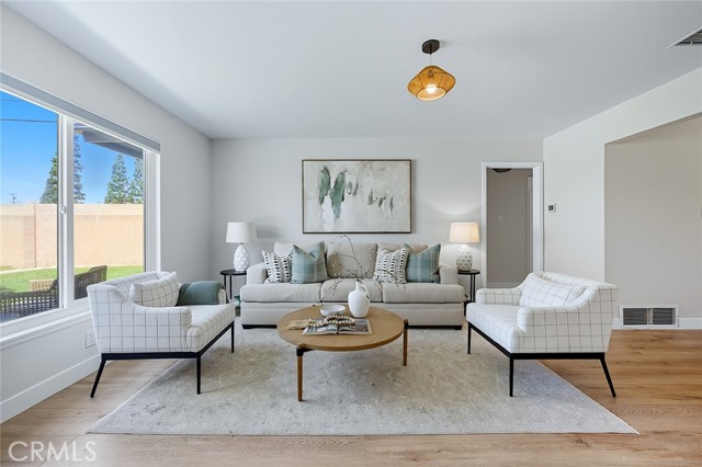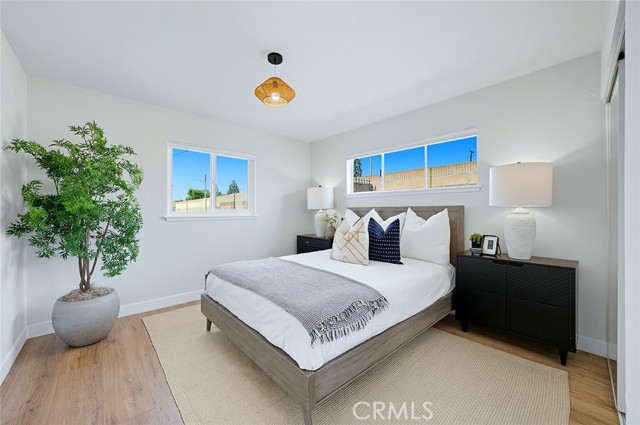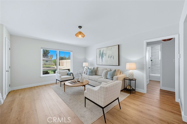 Discover your Anaheim sanctuary! Introducing a beautifully renovated mid-century, single-level home in the heart of the Anaheim Resort area, yards away from Disneyland. 2154 S. Madrid St. effortlessly blends charm, space, versatility and value into a rare find on a quiet cul de sac in a coveted area of Orange County. This turnkey property has been meticulously updated with new laminate, light wood flooring throughout, fresh paint, stylish woven light fixtures, new door hardware and more! A bright, open and airy floor plan seamlessly flows between ample living spaces. The completely updated kitchen features brand new stainless steel appliances, chic forest green cabinetry and a sunny dine in area. The gorgeously reappointed bathrooms include brand new, modern fixtures and large bedrooms offer plenty of storage space as well as natural light. Set on an expansive 8,000+ sq ft. corner lot, this abode includes a 2-car garage with built-in storage attached to a giant room with laundry hookups separate from the rest of the home, a huge grassy backyard that has been freshly landscaped and an oversized driveway, all poised the end of a peaceful cul de sac. This unique property presents both immediate livability and long-term potential. Whether you're dreaming of a lush garden retreat, room for additional living space, or even entertainment zones, the possibilities are plentiful. Not to mention the neighborhood has unbeatable walkability with true proximity to the Disneyland Resort, including world class shopping, dining and entertainment.