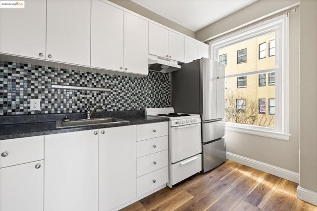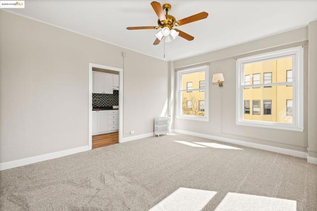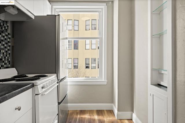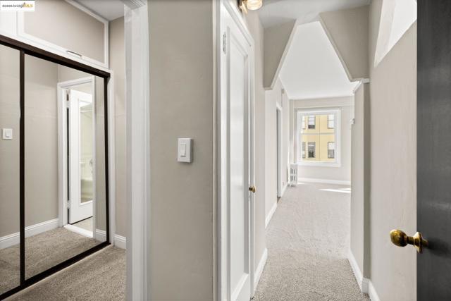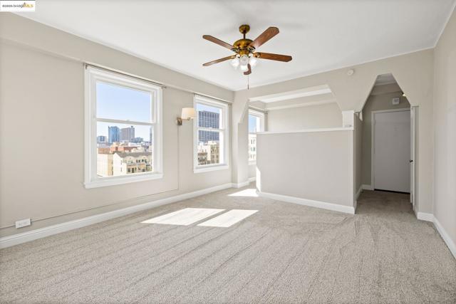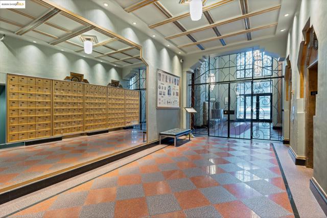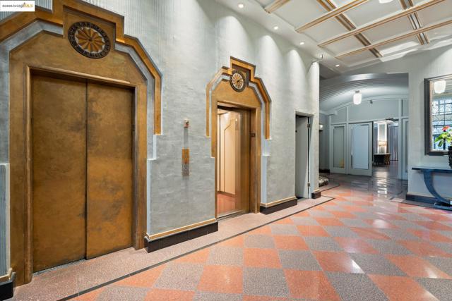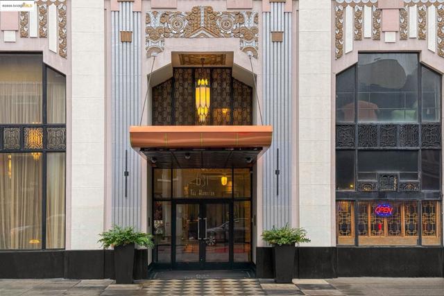 Charming remodeled corner unit condo in the beautiful Hamilton Building with 24 hour door person. Private exterior views of San Francisco, new paint & flooring, mirror closet doors, ceiling fan, newly refinished bathtub & original period details. This building is like a piece of fine art, with soaring high ceiling in the wonderful lobby with grand piano and high-end finishes. Views are stunning from the stylish roof-top deck. You will love this well-preserved time capsule. Close to transportation, restaurants and city night life. Complete with fitness center & HOA costs include heat, water, electricity & trash. Views: Downtown