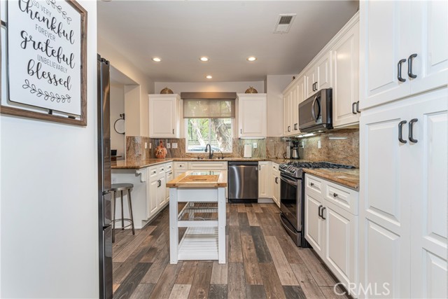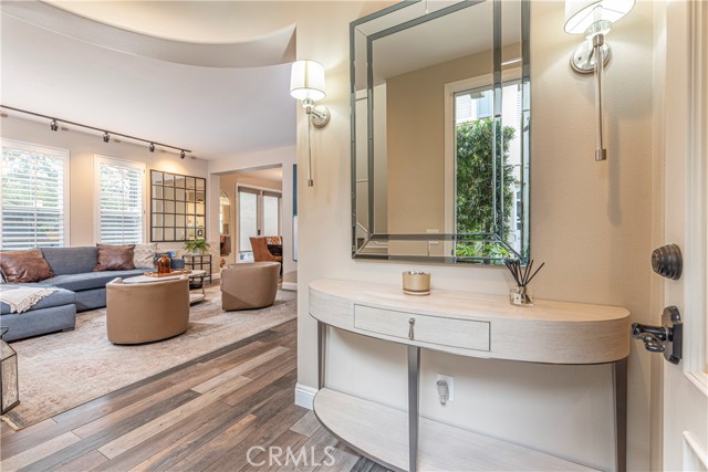 Welcome to your dream home in the prestigious Woodlands community of Valencia—a rare gem offering the perfect blend of warmth, elegance, and modern comfort. This beautifully upgraded 4-bedroom, 3-bathroom residence boasts an inviting layout, designer touches throughout, and a true sense of home from the moment you arrive. Step through the private, landscaped courtyard into a bright and stylish interior featuring luxury vinyl plank flooring, custom finishes, and abundant natural light. The spacious living room offers a sophisticated yet cozy ambiance with a stacked stone fireplace, wine display nook, and built-in cabinetry—perfect for both entertaining and relaxing evenings. The chef’s kitchen is a showstopper—complete with granite countertops, a large portable center island, upgraded stainless steel appliances, and an open flow to the formal dining area and private patio. Whether hosting a dinner party or enjoying a quiet breakfast, this space truly shines. Unique to this home is a charming under-stair reading nook/home office, ideal for work-from-home comfort or a whimsical hideaway. Upstairs, retreat to the generously sized bedrooms including a serene primary suite with en-suite bathroom, dual vanities, and a spacious walk-in closet. Each additional bedroom offers flexibility for guests, family, or a second office. Enjoy all the benefits of The Woodlands lifestyle—tree-lined streets, manicured grounds, walking trails, community amenities, and convenient access to award-winning schools, shopping, and dining