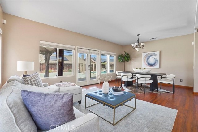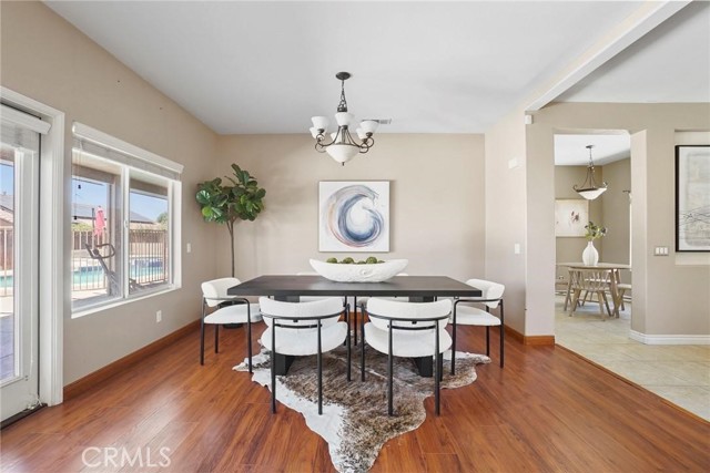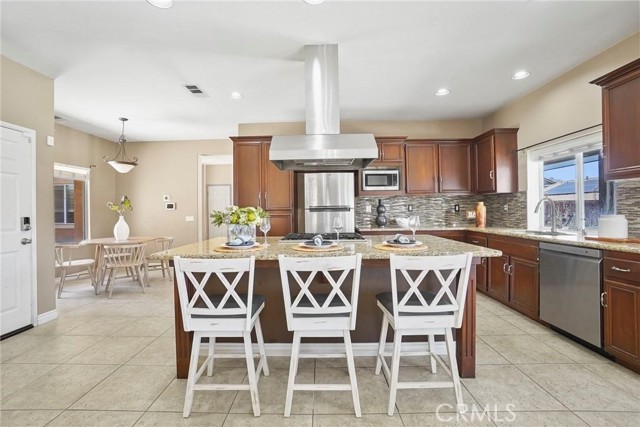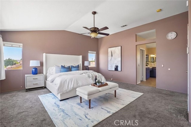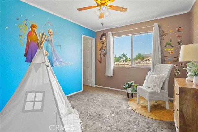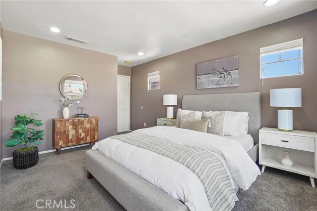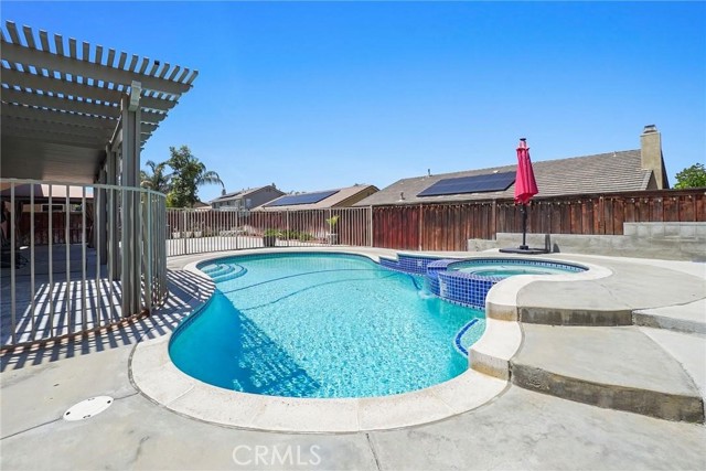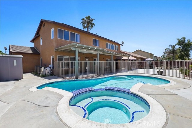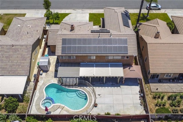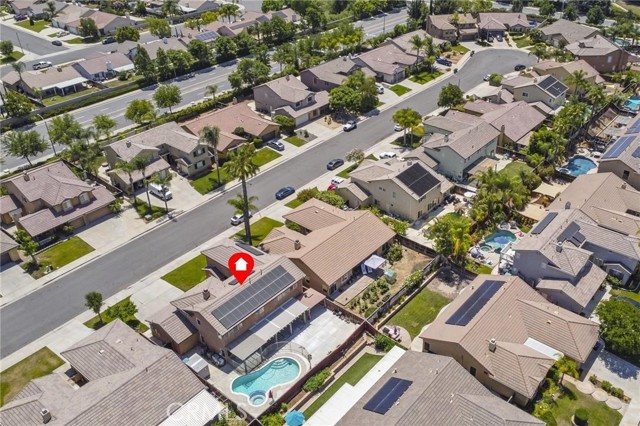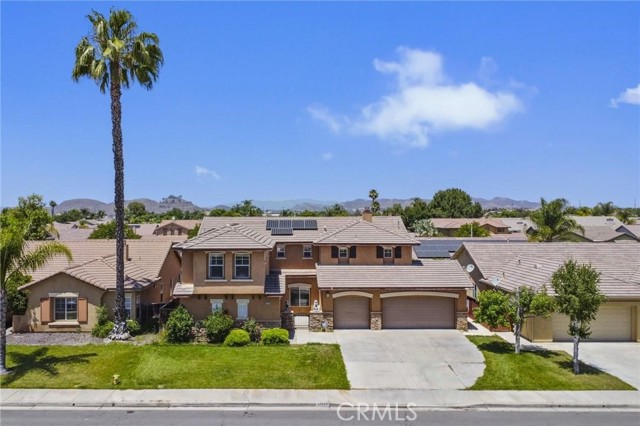 PRICED TO SELL!!! Come see this stunning and meticulously maintained two story home located in a quiet cul de sac street by Dutch Village next to French Valley area, right in the heart of Winchester. It offers 4 spacious bedrooms, 3 full bathrooms, a big loft and a pool. This home is designed with both functionality and elegance in mind. There is a private entrance bedroom ideal for casita, next gen conversion with full bathroom located next to the entrance courtyard by the main level. It's perfect for guests, in laws, a home office setup or extra rental income. Step inside to find an open concept living room layout filled with natural light, upgraded luxury flooring, custom window treatments, ceiling fan and recessed lighting throughout the main living areas. The gourmet kitchen is a chef’s dream, showcasing granite countertops, stainless steel appliances, shaker style cabinetry, walk in pantry for added storage, tile backsplash and chef vent hood over the kitchen island with its own breakfast bar facing the family room. Great to enjoy a nice meal with family and entertain guests. Once you step upstairs, you can enjoy a versatile loft space perfect for a media room, play area, or home gym. The expansive primary suite boasts a spa inspired ensuite bathroom with dual vanities, quartz countertops, a soaking tub, separate glass enclosed shower, and a generous walk in closet. Secondary bedrooms are generously sized and share a beautifully finished bathroom with modern tile accents and upgraded fixtures. Also located upstairs is the laundry room with plenty cabinets for extra storage and deep utility sink. The backyard is a private retreat on this big lot. Fully fenced and featuring concrete patio space, gated pool and spa, low maintenance landscaping with plenty of room to customize the perfect outdoor living area. Additional highlights include energy-efficient dual-pane windows, tankless water heater, smart home features, 36 solar panels and attached 3 car garage. Conveniently located near top rated schools and walking distance to Susan La Vorgna Elementary School, sports park, shopping centers and freeway. It won't last!!!