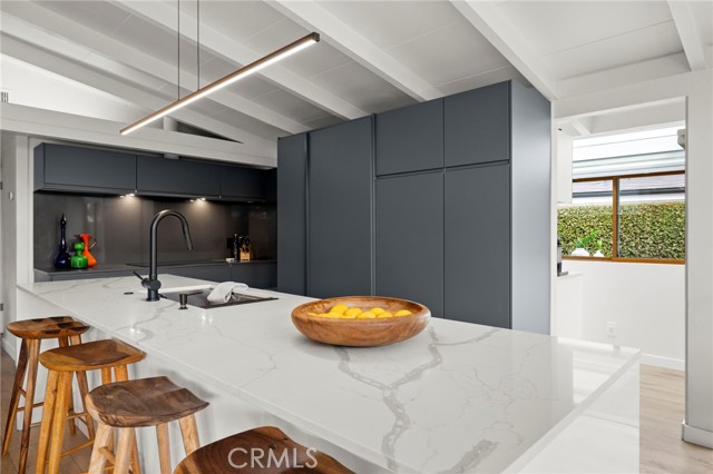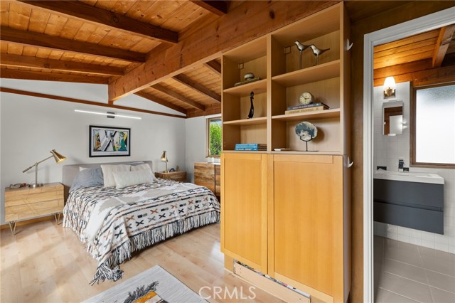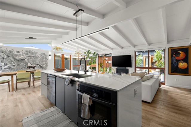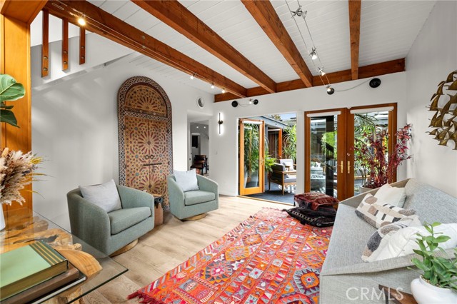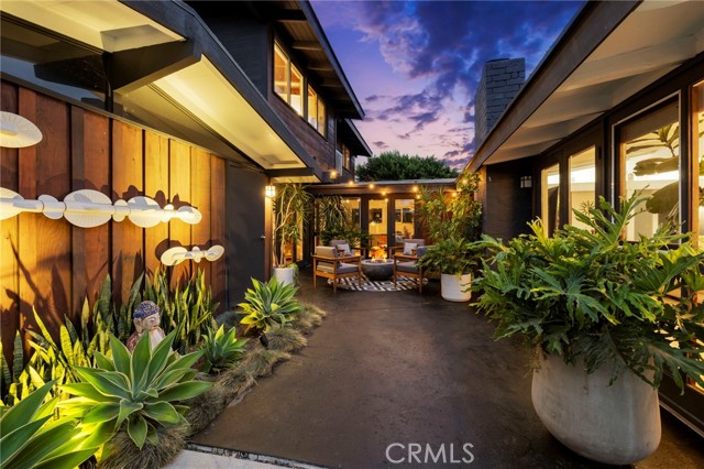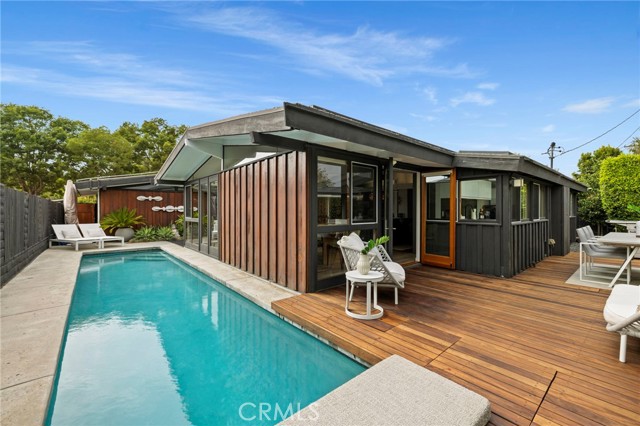 A rare and remarkable interpretation of Cliff May’s vision, this expanded Rancho Estates residence pushes the boundaries of classic California modernism while preserving every ounce of its soul. Nearly 2,300 square feet of thoughtfully designed space unfold across two levels, offering a flexible and functional floor plan that lives large without losing the intimacy and indoor-outdoor harmony that define May’s work. Here, space is never a compromise, it’s a celebration. The home’s post and beam architecture creates distinct zones for connection and retreat, with 3 spacious bedrooms, 3.5 baths, a dedicated office / creative space, and 3 versatile living areas. The flow is effortless: a formal living room, den, and expansive great room each open directly to the central courtyard, where sunlight and firelight blur the boundaries between inside and out. A minimalist chef’s kitchen with a quartz-topped island anchors the main living space, ideal for both daily life and entertaining, while a well-appointed butler’s pantry and laundry area with additional sink and counter space adds everyday practicality. Each room extends into its own outdoor experience, amplifying the home’s connection to nature. The upstairs suite features a sunny private balcony, the front bedroom opens to a tranquil meditation garden and infrared sauna, and the great room connects to an ipe deck built for entertaining, a glowing central courtyard with firepit and a striking heated lap pool. The home’s expansion delivers not just square footage but an elevated lifestyle: a serene primary suite with dual closets and ensuite full bath, a flexible upstairs wing with kitchenette and balcony perfect for guests or your creative makerspace. Presenting a truly turnkey opportunity, countless modern upgrades elevate the appeal of this special property: owned solar, EV charging station, tankless water heater, advanced water purification and softening systems, outdoor audio system, security system, modern central HVAC with ductless mini-splits, upgraded pool equipment, and creative built-in storage solutions. Set on a tree-lined and tranquil street just moments from the 800-acre El Dorado Park and nature preserve, 3110 Pattiz Ave embodies the Rancho Estates ethos: architectural authenticity, a deep connection to the outdoors, and a lifestyle that’s both relaxed and refined. This is where mid-century design meets modern life and where space, style, and soul come beautifully together.