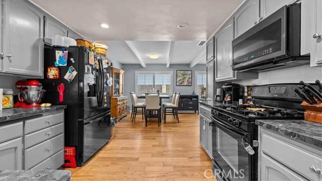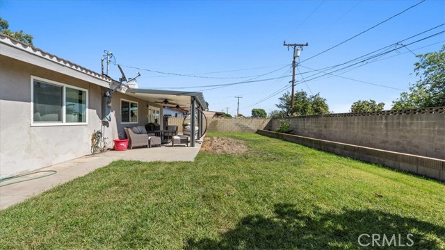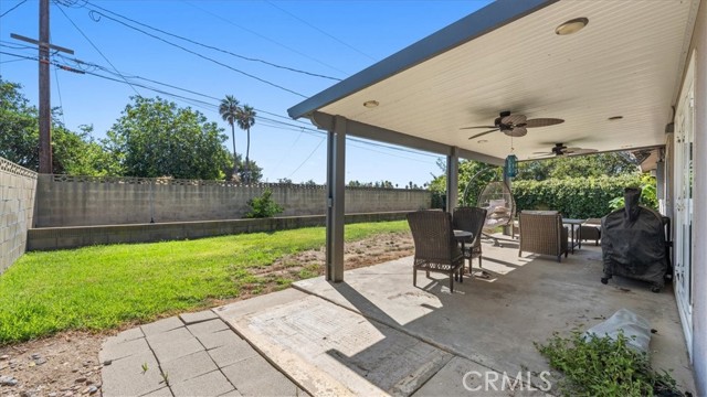 Step inside this beautiful home and be welcomed by a stunning stone fireplace in the living room, perfect for cozy gatherings. Wood flooring flows throughout, complementing the elegant kitchen with stylish cabinets, countertops, and appliances. Spacious, light-filled rooms feature large windows and new ceiling fans, creating an inviting atmosphere. This home boasts numerous upgrades, including all-new double-pane windows with shutters, fresh interior paint, and a recently upgraded HVAC system (8 years old) with new venting. The guest room includes a French door, while the master suite offers a newly remodeled bathroom for modern comfort. Additional enhancements include a new garage door opener, updated ceiling fans, and a premium Alumawood patio cover. With 4 generous bedrooms, automatic sprinklers, a durable metal roof, and both wood-burning and gas fireplaces, this home combines comfort with functionality. Outdoors, enjoy a covered back patio, open yard space, and mature avocado and orange trees—all situated on a private cul-de-sac.